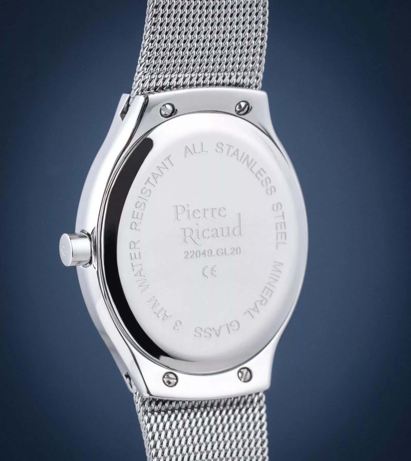 Женские немецкие часы с минеральным стекломМинеральное стеклоМинеральное стекло представляет собой искусственно выращенный минерал кварца. Такое стекло отличается особой устойчивостью к повреждениям и царапинам. Уступает по некоторым качествам сапфировому стеклу. Pierre Ricaud P22049.511EQ, кварцевый механизм с высокой точностью. Класс водозащиты: 30 метров, позволит защитить корпус от случайных брызг или капель дождя. Корпус часов изготовлен из стали. Стальной браслет на раскладной застёжкеРаскладная застёжкаТакой тип застёжки используется только на браслетах из металла. Она никогда не раскрывается полностью, происходит разделение на 2 и более частей. Раскладывающая застёжка снизит вероятность потери часов к минимуму..