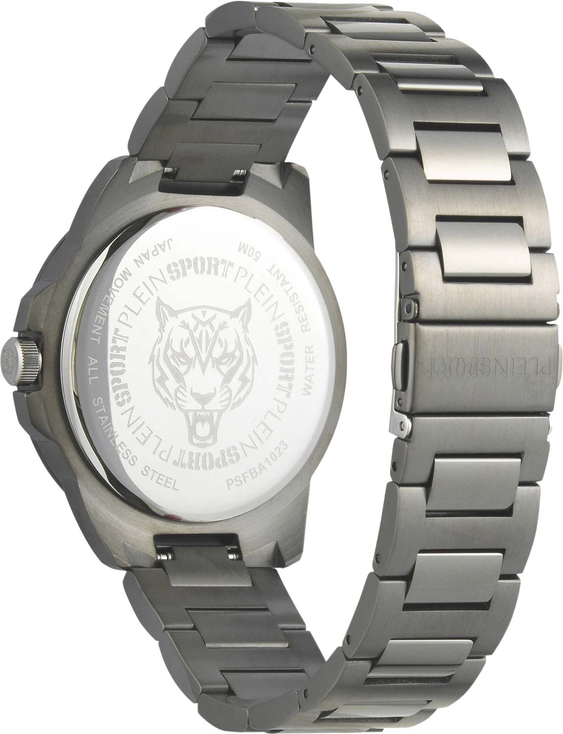 Немецкие мужские кварцевые часы с минеральным стекломМинеральное стеклоМинеральное стекло представляет собой искусственно выращенный минерал кварца. Такое стекло отличается особой устойчивостью к повреждениям и царапинам. Уступает по некоторым качествам сапфировому стеклу. Plein Sport Touchdown PSFBA1023, кварцевый механизм с высокой точностью. Класс водозащиты: 50 метров, позволит защитить корпус от случайных брызг или капель дождя. Корпус выполнен из стали с IP-покрытиемIP-покрытиеМетод ионного напыления. Демонстрирует повышенную устойчивость к истиранию, окислению и химическим веществам. Под воздействием высокого давления и температуры около 1500°C молекулы металла надёжно соединяются с частицами корпуса часов.. Металлический браслет с раскладным замком. Минеральное стеклоМинеральное стеклоМинеральное стекло представляет собой искусственно выращенный минерал кварца. Такое стекло отличается особой устойчивостью к повреждениям и царапинам. Уступает по некоторым качествам сапфировому стеклу. устойчивое к мелким механическим повреждениям. Окошко даты находится в положении между 4 и 5 часов.