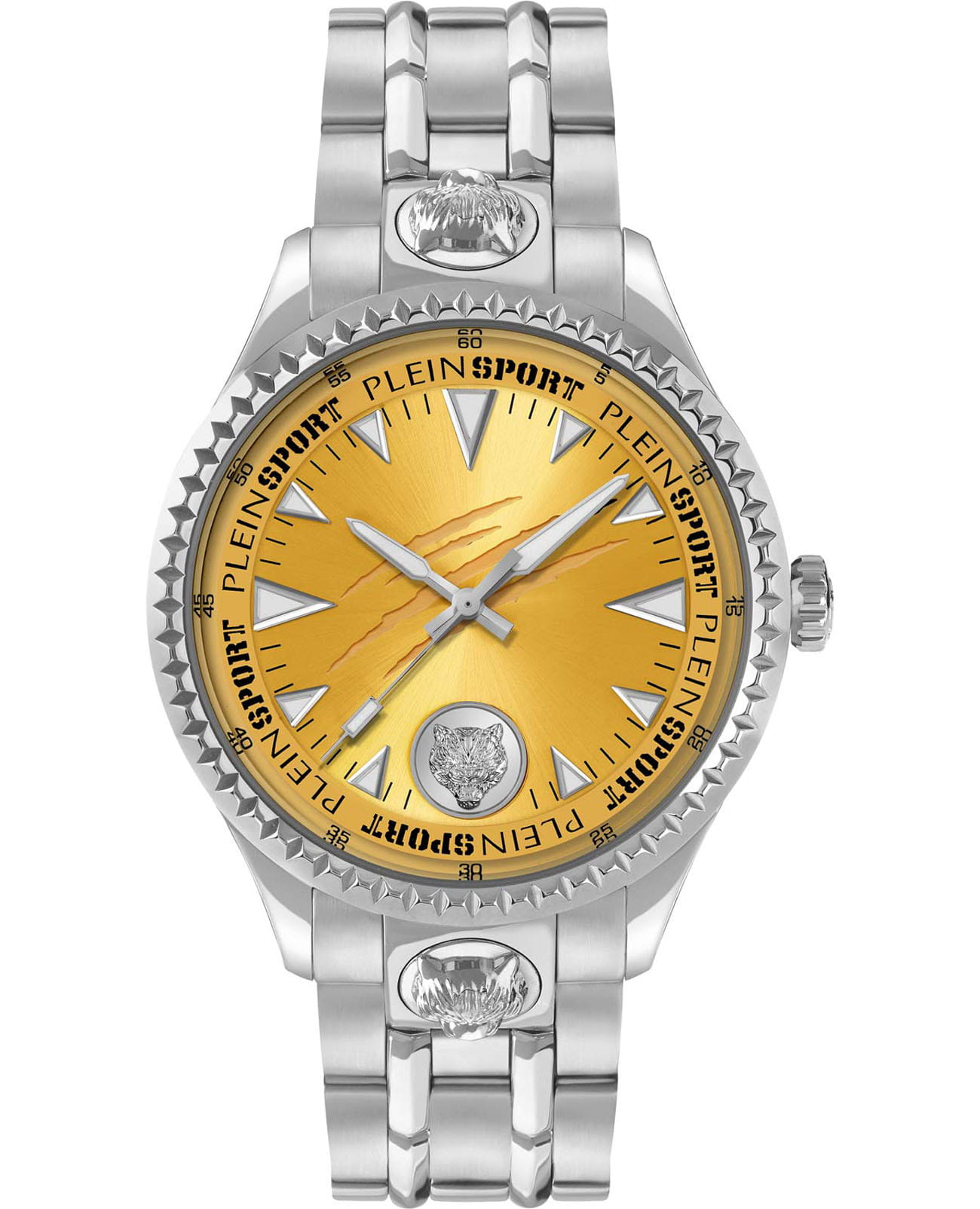 Дерзкий аксессуар со смелым, бунтарским дизайном будет с вами в любом приключении. Мужские кварцевые Plein Sport PS5BA0824 часы. Корпус часов изготовлен из стали. Циферблат дополнен паттерном ''след когтей''. Метки в виде штрихов, фирменное лого в виде тигра в положении 6 часов. Рифленая заводная головка с защитой. Класс водозащиты: 50 метров, позволит защитить корпус от случайных брызг или капель дождя. Стальной браслет на раскладной застёжкеРаскладная застёжкаТакой тип застёжки используется только на браслетах из металла. Она никогда не раскрывается полностью, происходит разделение на 2 и более частей. Раскладывающая застёжка снизит вероятность потери часов к минимуму..