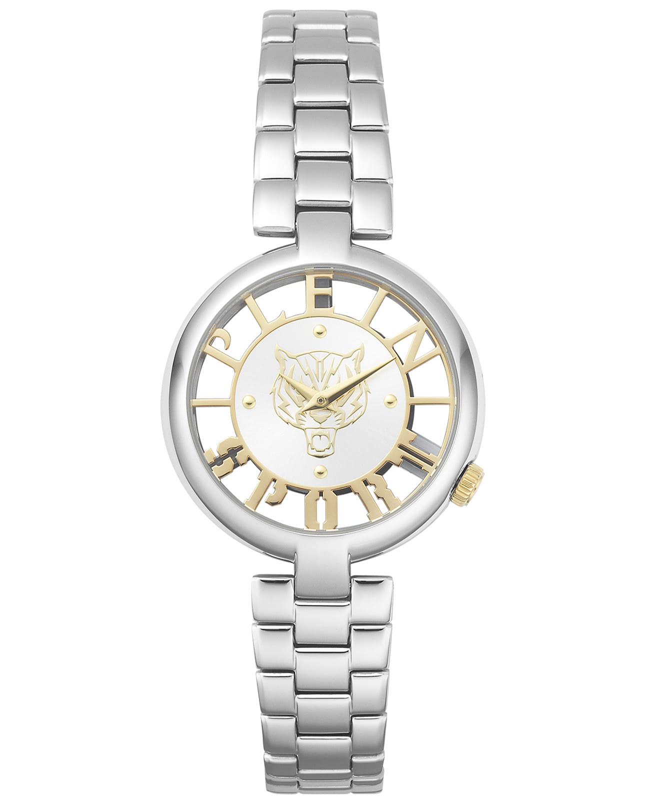 Немецкие женские кварцевые часы с минеральным стекломМинеральное стеклоМинеральное стекло представляет собой искусственно выращенный минерал кварца. Такое стекло отличается особой устойчивостью к повреждениям и царапинам. Уступает по некоторым качествам сапфировому стеклу. Plein Sport Tiger Luxe PSMBA0123, кварцевый механизм с высокой точностью. Класс водозащиты: 50 метров, позволит защитить корпус от случайных брызг или капель дождя. Корпус часов изготовлен из стали. Стальной браслет на раскладной застёжкеРаскладная застёжкаТакой тип застёжки используется только на браслетах из металла. Она никогда не раскрывается полностью, происходит разделение на 2 и более частей. Раскладывающая застёжка снизит вероятность потери часов к минимуму..
