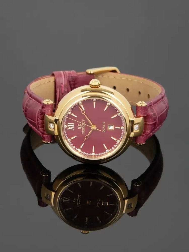 Poljot 2015.676011 — элегантные женские кварцевые часы, созданные в духе классической утончённости и лёгкости. Корпус из нержавеющей стали с PVD-покрытиемPVDУльтратонкое покрытие наносится в технике вакуумного напыления, сочетает в себе нитрид титана особой прочности со слоем золота или оксида хрома. Несёт в себе декоративную или защитную функцию. подчёркивает аккуратные пропорции модели, а глубокий циферблат с римской цифрой XII и изящными стрелками создаёт утончённый контраст и ощущение гармонии. Окно даты на позиции «6 часов» добавляет практичности, сохраняя визуальную чистоту композиции. Прочное минеральное стеклоМинеральное стеклоМинеральное стекло представляет собой искусственно выращенный минерал кварца. Такое стекло отличается особой устойчивостью к повреждениям и царапинам. Уступает по некоторым качествам сапфировому стеклу. защищает циферблат от царапин, а ремешок из натуральной кожи обеспечивает комфортное прилегание и элегантный внешний вид. Poljot — это женственность, точность и стиль в каждой детали, идеальный аксессуар для повседневной элегантности.