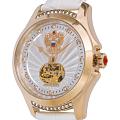 , что придаёт ей благородный внешний вид и устойчивость к царапинам. Циферблат белого цвета с открытым окном баланса и инкрустирован кристаллами Swarovski, подчёркивающими изысканность и внимание к деталям. Защиту циферблата обеспечивает минеральное стеклоМинеральное стеклоМинеральное стекло представляет собой искусственно выращенный минерал кварца. Такое стекло отличается особой устойчивостью к повреждениям и царапинам. Уступает по некоторым качествам сапфировому стеклу., устойчивое к повседневным нагрузкам и обеспечивающее хорошую прозрачность. Часы оснащены механизмом с автоподзаводом, разработанным японской компанией Miyota, что гарантирует точность и надёжность. Кожаный ремешок шириной 18 мм дополнен стандартной застёжкой, обеспечивающей комфорт и удобство при ношении. Водонепроницаемость позволяет использовать часы в условиях случайных брызг или капель дождя. Эти часы станут универсальным аксессуаром для тех, кто ценит сочетание стиля, качества и элегантности — идеальный выбор для женщин, которые следят за своим имиджем и предпочитают выделяться.