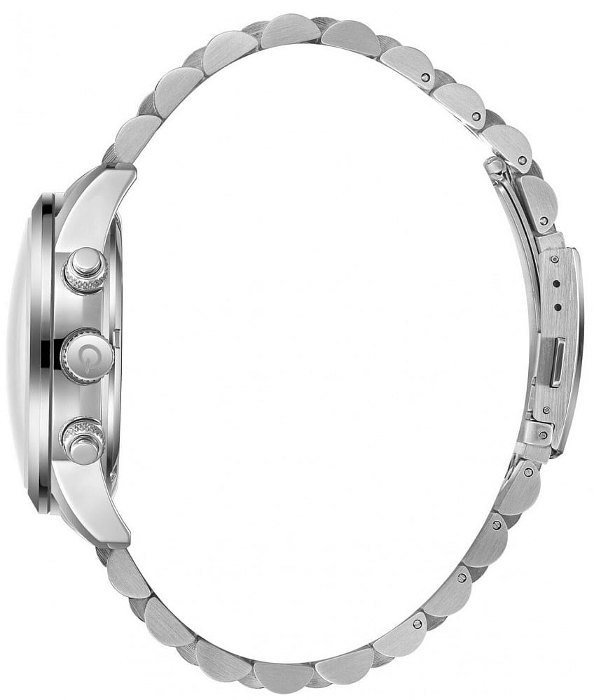Браслет из нержавеющей стали дополнен раскладывающейся застежкойРаскладная застёжкаТакой тип застёжки используется только на браслетах из металла. Она никогда не раскрывается полностью, происходит разделение на 2 и более частей. Раскладывающая застёжка снизит вероятность потери часов к минимуму., обеспечивающей надежную фиксацию на руке. Завинчивающаяся задняя крышка повышает степень защиты механизма.