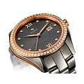 Аксессуар премиальной категории приковывает взгляды, оригинальный внешний вид очаровывает, хочется поближе рассмотреть каждую деталь. Тёмный циферблат «солнечные лучи» инкрустирован 10-ю бриллиантами в 0,065 карат, он гармонирует с безелемБезельВнешний ободок, закрепляющий стекло. В спортивных часах так называется поворотное кольцо с делениями на циферблате, выполняет роль таймера – замеряет отрезки времени на шкале. Неподвижный безель – элемент декора. Однонаправленно вращающийся безель на дайверских часах позволяет фиксировать моменты погружения и выныривания на поверхность., декорированным 56-ю бриллиантами в 0,834 карат. Автоматический калибр ETA 2681 с запасом хода 38 часов. Стекло из сапфира имеет антибликовое покрытие. Корпус из плазменной керамикиВысокотехнологичная плазменная керамикаИнновационный материал, технология запатентована. Выплавление керамики осуществляется в печи при 20 000 °C, белоснежный материал под воздействием ультравысокой температуры приобретает уникальный блеск, присущий металлам. и нержавеющей стали с PVD-покрытиемPVDУльтратонкое покрытие наносится в технике вакуумного напыления, сочетает в себе нитрид титана особой прочности со слоем золота или оксида хрома. Несёт в себе декоративную или защитную функцию., керамический браслет со вставками из материала CeramosCeramosМатериал являет собой инновационное сочетание высокотехнологичной керамики и сплава металла. Он объединяет керамическую устойчивость к царапинам и металлический роскошный блеск. .Сохранение водонепроницаемости при давлении до 5 бар. . Индикация даты. Диаметр корпуса: 36 мм.