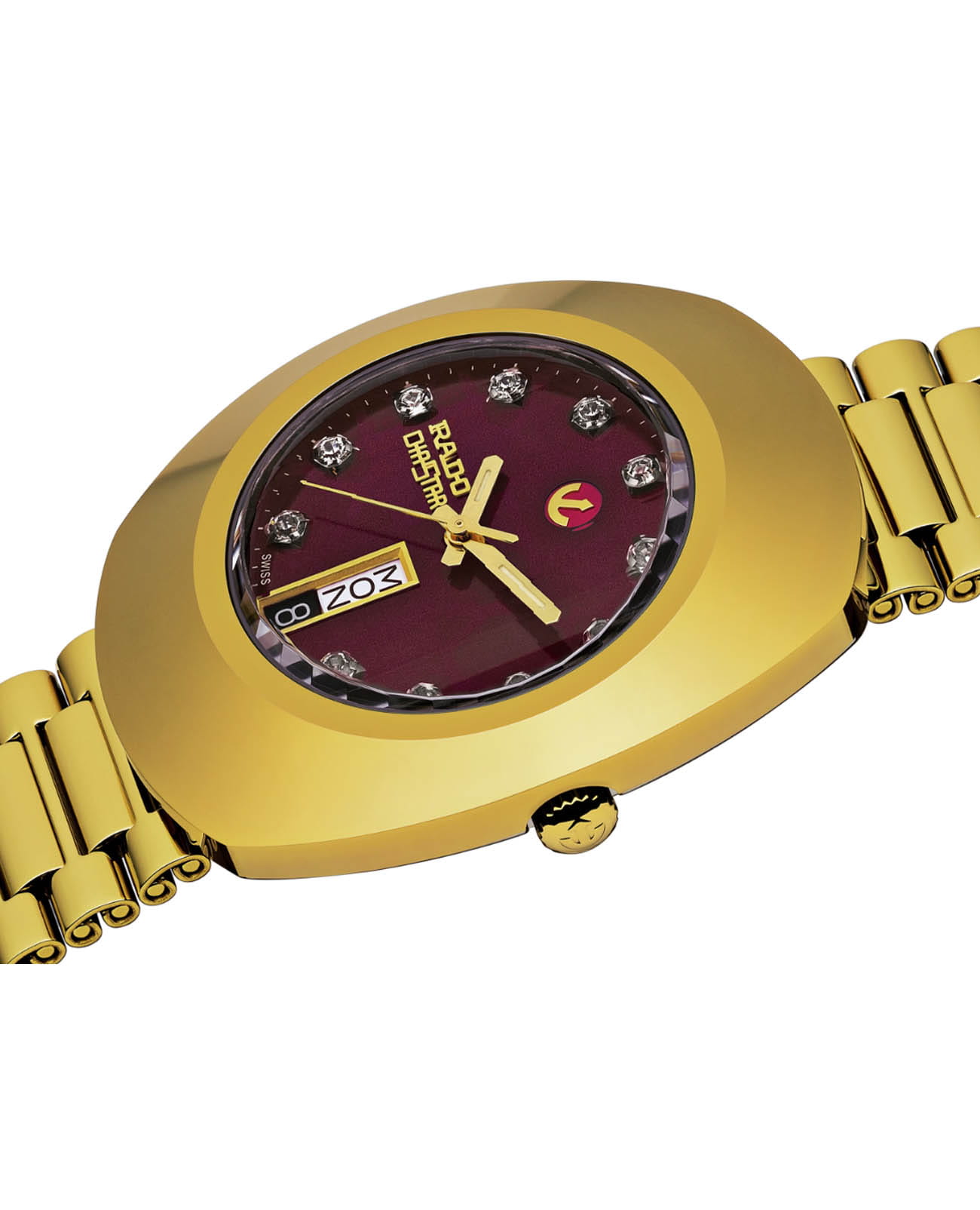 Мужские часы Rado The Original Automatic R12413573 с надёжным автоматическим механизмом. Корпус и браслет часов выполнены из нержавеющей стали c PVD-покрытиемPVDУльтратонкое покрытие наносится в технике вакуумного напыления, сочетает в себе нитрид титана особой прочности со слоем золота или оксида хрома. Несёт в себе декоративную или защитную функцию.. Стальной браслет на раскладной застёжкеРаскладная застёжкаТакой тип застёжки используется только на браслетах из металла. Она никогда не раскрывается полностью, происходит разделение на 2 и более частей. Раскладывающая застёжка снизит вероятность потери часов к минимуму.. Класс водозащиты: 30 метров, позволит защитить корпус от случайных брызг или капель дождя. Циферблат с узорами инкрустирован сапфирами. Окошко даты и дня недели находится в положении 6 часов. Стрелки и метки с люминесцентным покрытиемЛюминесцентное покрытиеПозволяет считывать показания времени в темноте. Производители наносят на стрелки, часовые индексы, безель или поверхность циферблата светонакопительный состав, дающий холодное свечение..