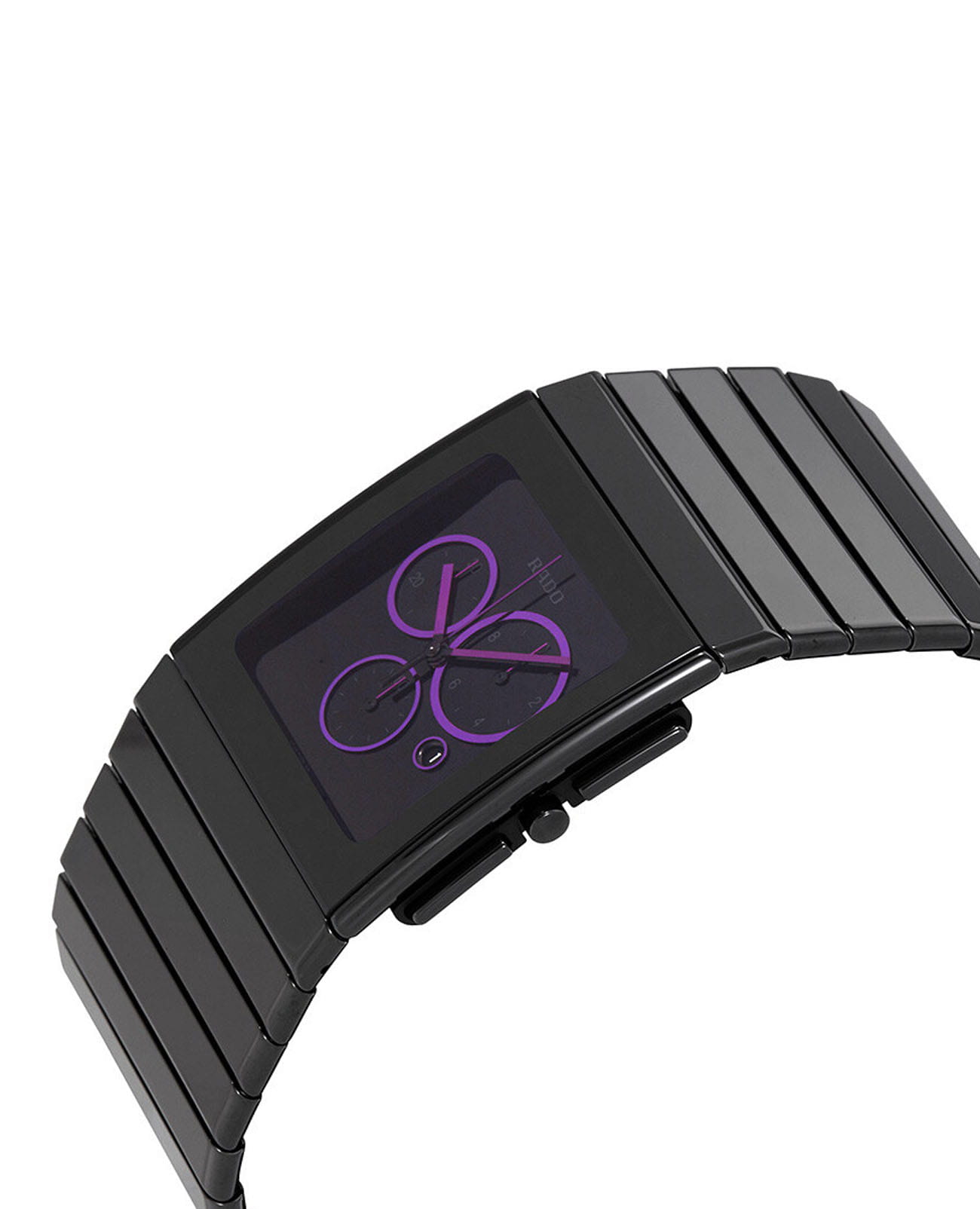 Мужские швейцарские наручные часы- хронографХронографФункция позволяет измерять отрезки времени с особой точностью: часы, минуты, секунды. Верным признаком хронографа является наличие на циферблате 3 дополнительных окошек-счётчиков. Rado Ceramica R21714182, кварцевый механизм с высокой точностью. Сапфировое стеклоСапфировое стеклоПрочный и надёжный материал из кристалла сапфира синтетического происхождения, характеризующийся особой твёрдостью и устойчивостью к царапинам и повреждениям. устойчивое к появлению царапин, обладающее высокой прозрачностью. Класс водозащиты: 30 метров, позволит защитить корпус от случайных брызг или капель дождя. Браслет из высокотехнологичной плазменной керамикиВысокотехнологичная плазменная керамикаИнновационный материал, технология запатентована. Выплавление керамики осуществляется в печи при 20 000 °C, белоснежный материал под воздействием ультравысокой температуры приобретает уникальный блеск, присущий металлам. на раскладной застёжкеРаскладная застёжкаТакой тип застёжки используется только на браслетах из металла. Она никогда не раскрывается полностью, происходит разделение на 2 и более частей. Раскладывающая застёжка снизит вероятность потери часов к минимуму..