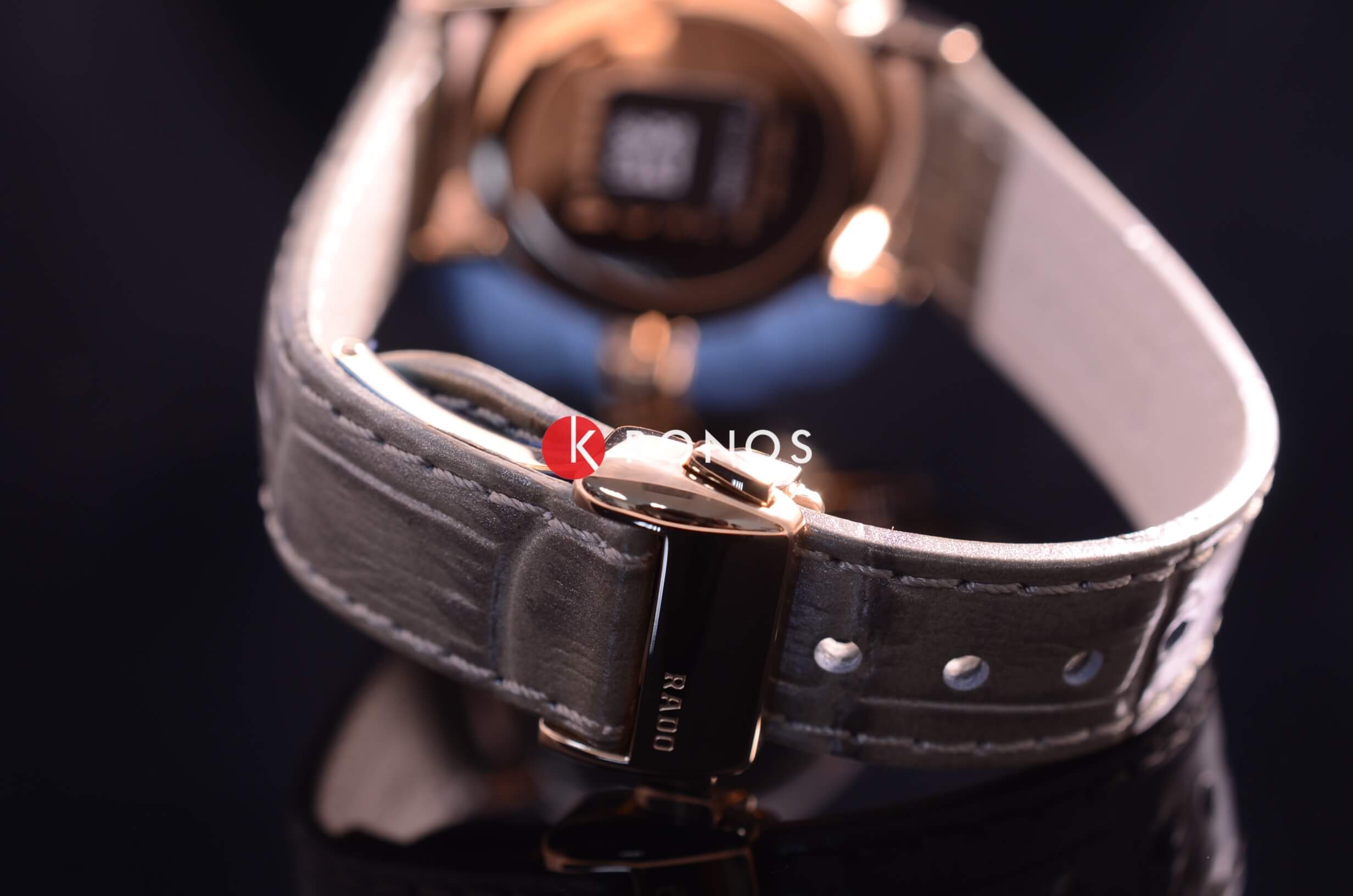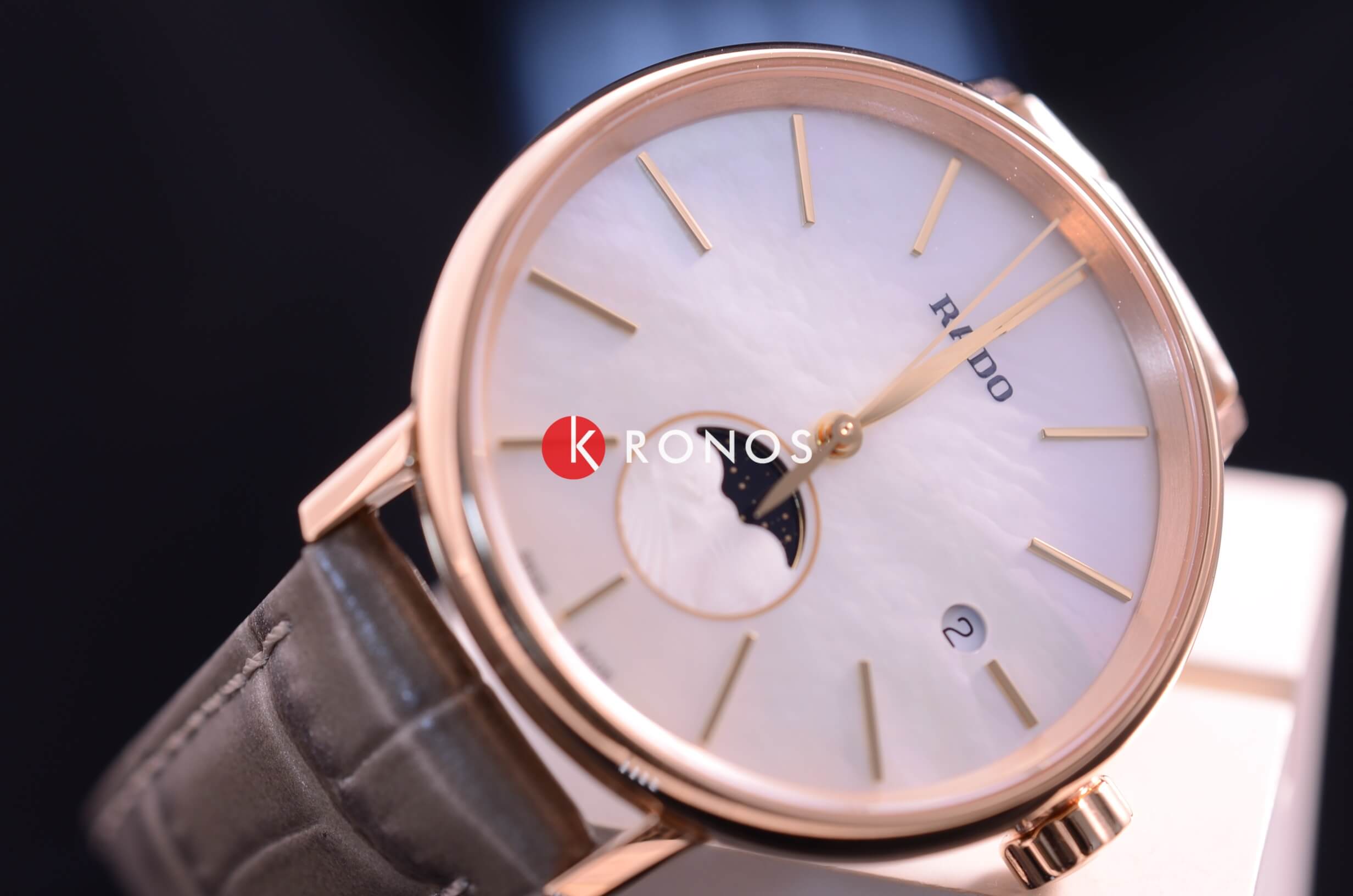 Роскошный перламутровый циферблат завораживает переливающимися оттенками, такое исполнение являет собой настоящую элегантность и особый стиль. Привлекательностью обладает и календарь, отображающий фазы луны. Такое оформление идеально сочетается с тонким серым ремешком с жемчужным отливом из натуральной кожи. Часы работают за счёт высокоточного кварцевого калибра ETA F05.841. Сапфировое стекло имеет антибликовое покрытие. Апертура даты. PVD-покрытиеPVDУльтратонкое покрытие наносится в технике вакуумного напыления, сочетает в себе нитрид титана особой прочности со слоем золота или оксида хрома. Несёт в себе декоративную или защитную функцию. корпуса. Диаметр корпуса: 34 мм.