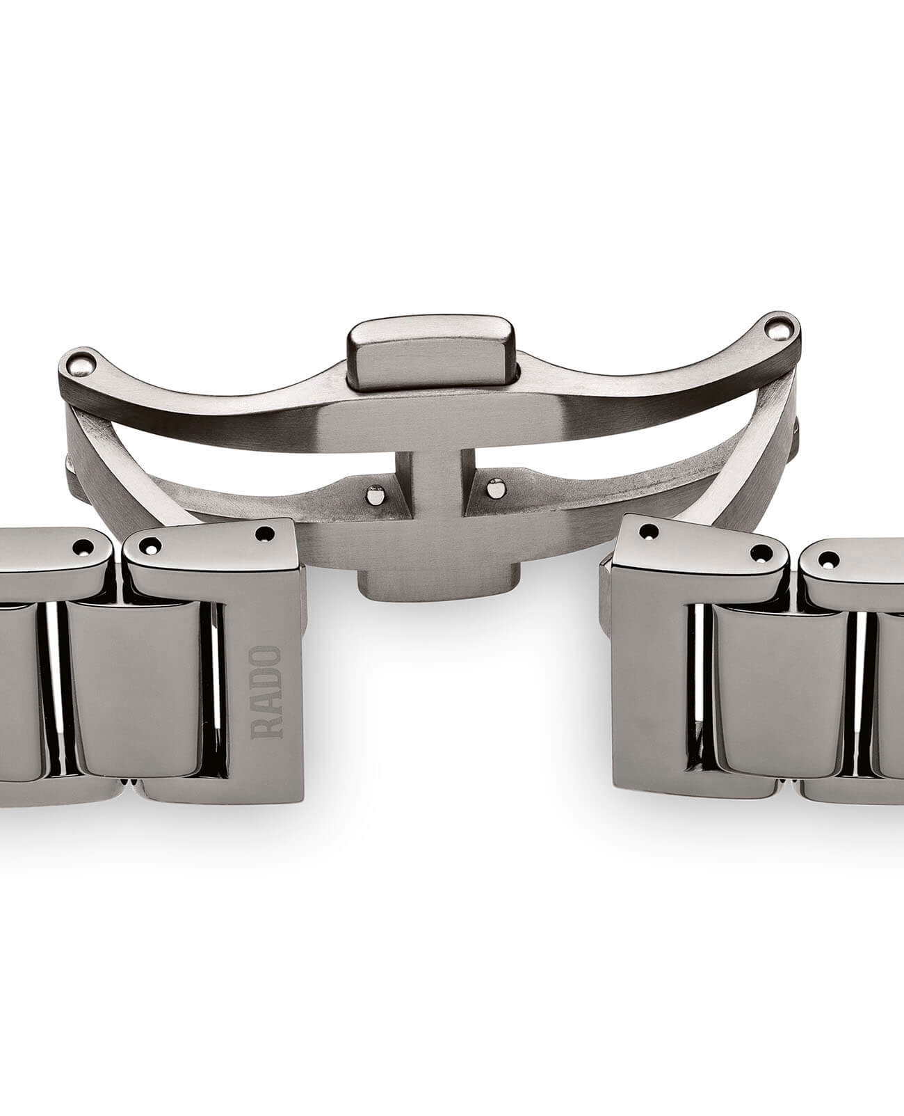 Швейцарские механические часы с автоподзаводом Rado True Thinline Automatic R27088202. Сапфировое стеклоСапфировое стеклоПрочный и надёжный материал из кристалла сапфира синтетического происхождения, характеризующийся особой твёрдостью и устойчивостью к царапинам и повреждениям. устойчивое к мелким механическим повреждениям. Корпус часов из высокотехнологичной плазменной керамикиВысокотехнологичная плазменная керамикаИнновационный материал, технология запатентована. Выплавление керамики осуществляется в печи при 20 000 °C, белоснежный материал под воздействием ультравысокой температуры приобретает уникальный блеск, присущий металлам.. Класс водозащиты: 30 метров, позволит защитить корпус от случайных брызг или капель дождя. Браслет из высокотехнологичной плазменной керамикиВысокотехнологичная плазменная керамикаИнновационный материал, технология запатентована. Выплавление керамики осуществляется в печи при 20 000 °C, белоснежный материал под воздействием ультравысокой температуры приобретает уникальный блеск, присущий металлам.на застёжке-бабочкеЗастёжка "бабочка"Такой вид застёжки дополняется предохранителями, помогающими избежать случайного раскрытия браслета. Обладают изящным исполнением. .