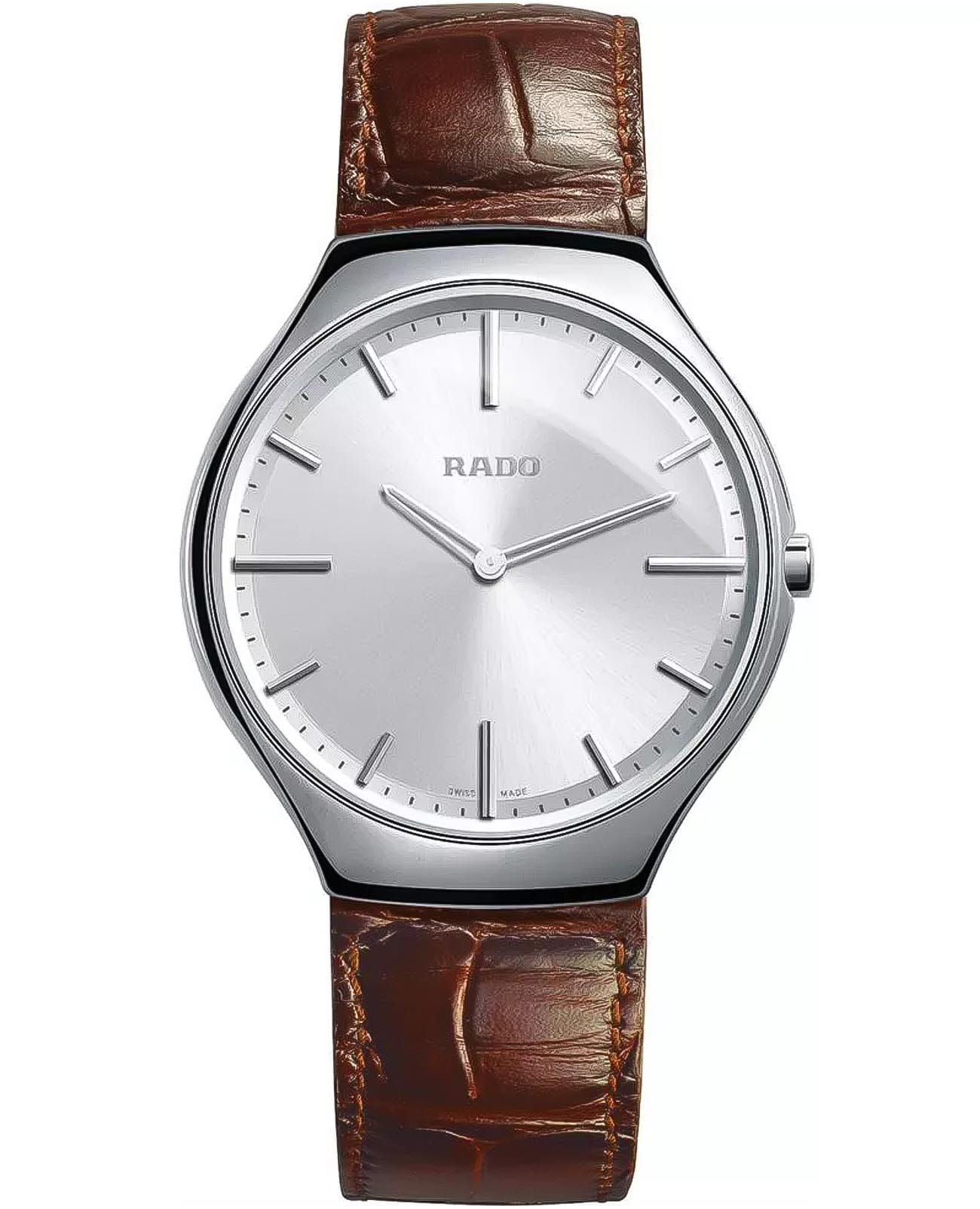Женские кварцевые швейцарские часы Rado True R27955105. Корпус часов изготовлен из высокотехнологичной плазменной керамикиВысокотехнологичная плазменная керамикаИнновационный материал, технология запатентована. Выплавление керамики осуществляется в печи при 20 000 °C, белоснежный материал под воздействием ультравысокой температуры приобретает уникальный блеск, присущий металлам.. Кожаный ремешок с раскладной застёжкойРаскладная застёжкаТакой тип застёжки используется только на браслетах из металла. Она никогда не раскрывается полностью, происходит разделение на 2 и более частей. Раскладывающая застёжка снизит вероятность потери часов к минимуму.. Сапфировое стеклоСапфировое стеклоПрочный и надёжный материал из кристалла сапфира синтетического происхождения, характеризующийся особой твёрдостью и устойчивостью к царапинам и повреждениям. устойчивое к мелким механическим повреждениям. Класс водозащиты: 30 метров, позволит защитить корпус от случайных брызг или капель дождя. Окошко даты находится в положении 3 часа.