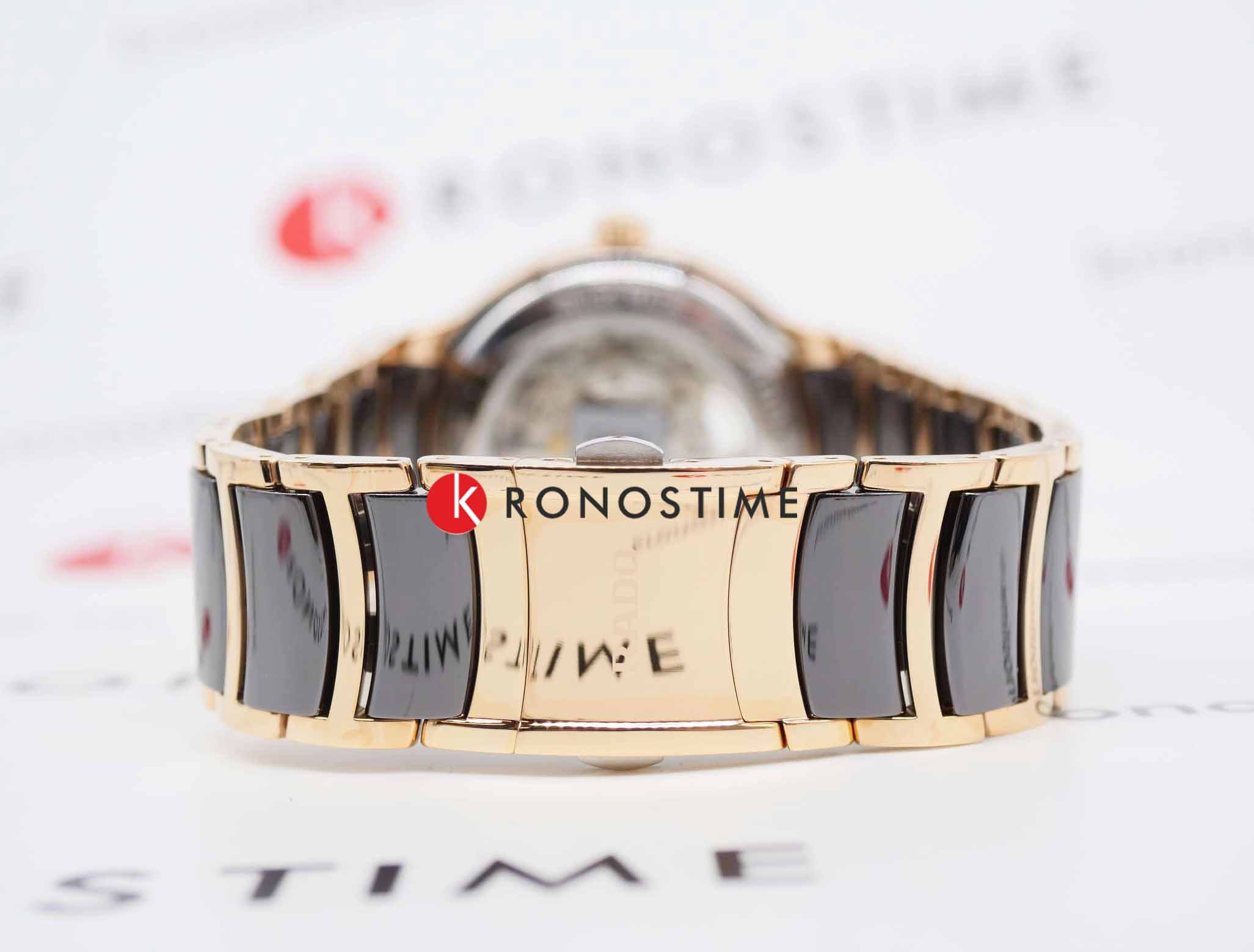 Швейцарские механические часы-скелетоны с автоподзаводом Rado Centrix Automatic Open Heart R30013302. Корпус часов изготовлен из нержавеющей стали с PVD-покрытиемPVDУльтратонкое покрытие наносится в технике вакуумного напыления, сочетает в себе нитрид титана особой прочности со слоем золота или оксида хрома. Несёт в себе декоративную или защитную функцию.. Браслет из стали PVD-покрытиемPVDУльтратонкое покрытие наносится в технике вакуумного напыления, сочетает в себе нитрид титана особой прочности со слоем золота или оксида хрома. Несёт в себе декоративную или защитную функцию. и высокотехнологичной керамикиВысокотехнологичная керамикаИнновационный запатентованный Rado материал с гладкой или матовой поверхностью. Керамика за счёт кристаллической структуры обладает повышенной устойчивостью от возникновения царапин. Материал способен принимать температуру тела человека, обеспечивая невероятный комфорт при ношении. на раскладной застёжкеРаскладная застёжкаТакой тип застёжки используется только на браслетах из металла. Она никогда не раскрывается полностью, происходит разделение на 2 и более частей. Раскладывающая застёжка снизит вероятность потери часов к минимуму.. Сапфировое стеклоСапфировое стеклоПрочный и надёжный материал из кристалла сапфира синтетического происхождения, характеризующийся особой твёрдостью и устойчивостью к царапинам и повреждениям. устойчивое к мелким механическим повреждениям. Класс водозащиты: 50 метров, позволит защитить корпус от случайных брызг или капель дождя.