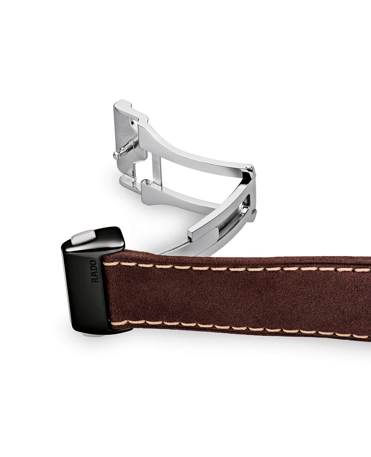 Премиальная модель One Out отличается стильным дизайном, соединяющим классическую лаконичность и спортивные детали. Синий циферблат с элегантным продольным узором дополнен счётчиками хронографаХронографФункция позволяет измерять отрезки времени с особой точностью: часы, минуты, секунды. Верным признаком хронографа является наличие на циферблате 3 дополнительных окошек-счётчиков. и окошком даты. Уникальность аксессуара заключается в используемых материалах: корпус изготовлен из хирургической стали 316L и высокотехнологичной керамикиВысокотехнологичная керамикаИнновационный запатентованный Rado материал с гладкой или матовой поверхностью. Керамика за счёт кристаллической структуры обладает повышенной устойчивостью от возникновения царапин. Материал способен принимать температуру тела человека, обеспечивая невероятный комфорт при ношении. со вставками из бронзы, ремешок сделан из натуральной кожи. В основе - механизм ETA 2894-2 с запасом хода 45 часов. Прозрачная задняя крышка. Выпуклое сапфировое стекло с покрытием «антиблик». Водонепроницаемость до 10 бар. . Секундомер, тахиметрТахиметрРазмеченная шкала, располагается на ободке или безеле часов. Тахиметр позволяет рассчитать скорость на определённом участке пути, расстояние измеряется в километрах или милях.. Диаметр корпуса: 45 мм.
