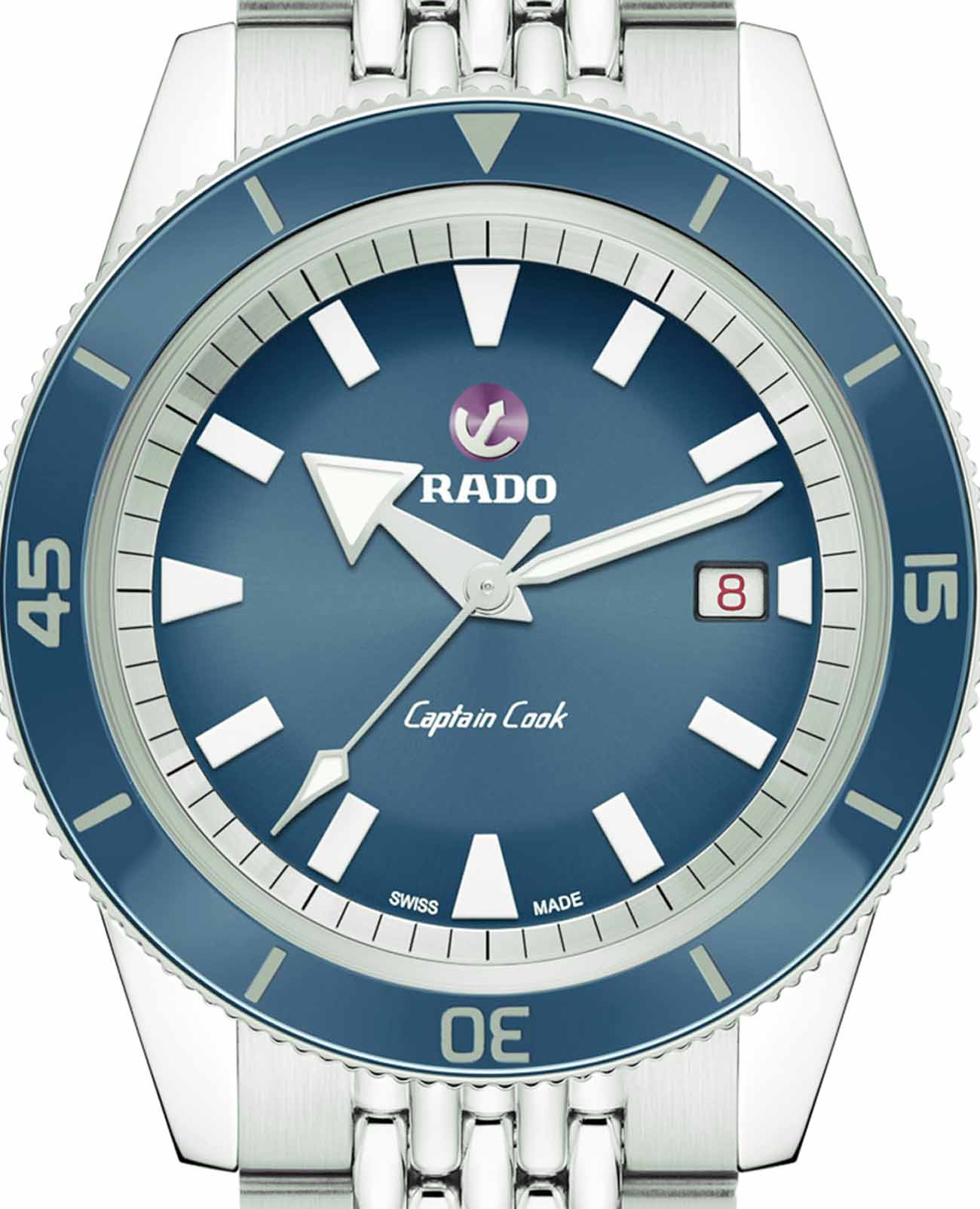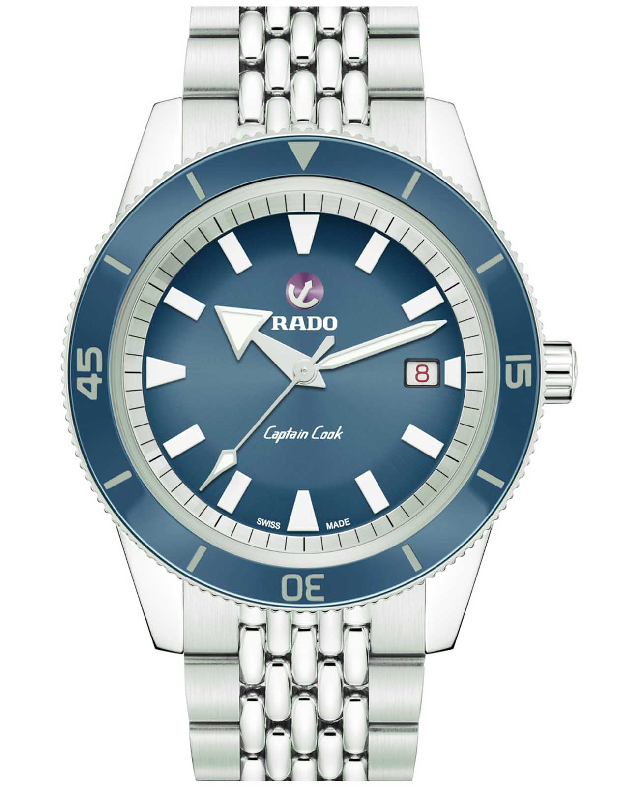 Мужские швейцарские механические часы Rado Captain Cook Automatic R32504408. Сапфировое стеклоСапфировое стеклоПрочный и надёжный материал из кристалла сапфира синтетического происхождения, характеризующийся особой твёрдостью и устойчивостью к царапинам и повреждениям. устойчивое к мелким механическим повреждениям. Корпус часов изготовлен из нержавеющей стали. БезельБезельВнешний ободок, закрепляющий стекло. В спортивных часах так называется поворотное кольцо с делениями на циферблате, выполняет роль таймера – замеряет отрезки времени на шкале. Неподвижный безель – элемент декора. Однонаправленно вращающийся безель на дайверских часах позволяет фиксировать моменты погружения и выныривания на поверхность. из Высокотехнологичной керамикиВысокотехнологичная керамикаИнновационный запатентованный Rado материал с гладкой или матовой поверхностью. Керамика за счёт кристаллической структуры обладает повышенной устойчивостью от возникновения царапин. Материал способен принимать температуру тела человека, обеспечивая невероятный комфорт при ношении. и стали. Стрелки и метки с люминесцентным покрытиемЛюминесцентное покрытиеПозволяет считывать показания времени в темноте. Производители наносят на стрелки, часовые индексы, безель или поверхность циферблата светонакопительный состав, дающий холодное свечение..Окошко даты находится в положении 3 часа. Класс водозащиты: 300 метров, позволит плавать, нырять и заниматься другими водными видами спорта. Стальной браслет на раскладной застёжкеРаскладная застёжкаТакой тип застёжки используется только на браслетах из металла. Она никогда не раскрывается полностью, происходит разделение на 2 и более частей. Раскладывающая застёжка снизит вероятность потери часов к минимуму..