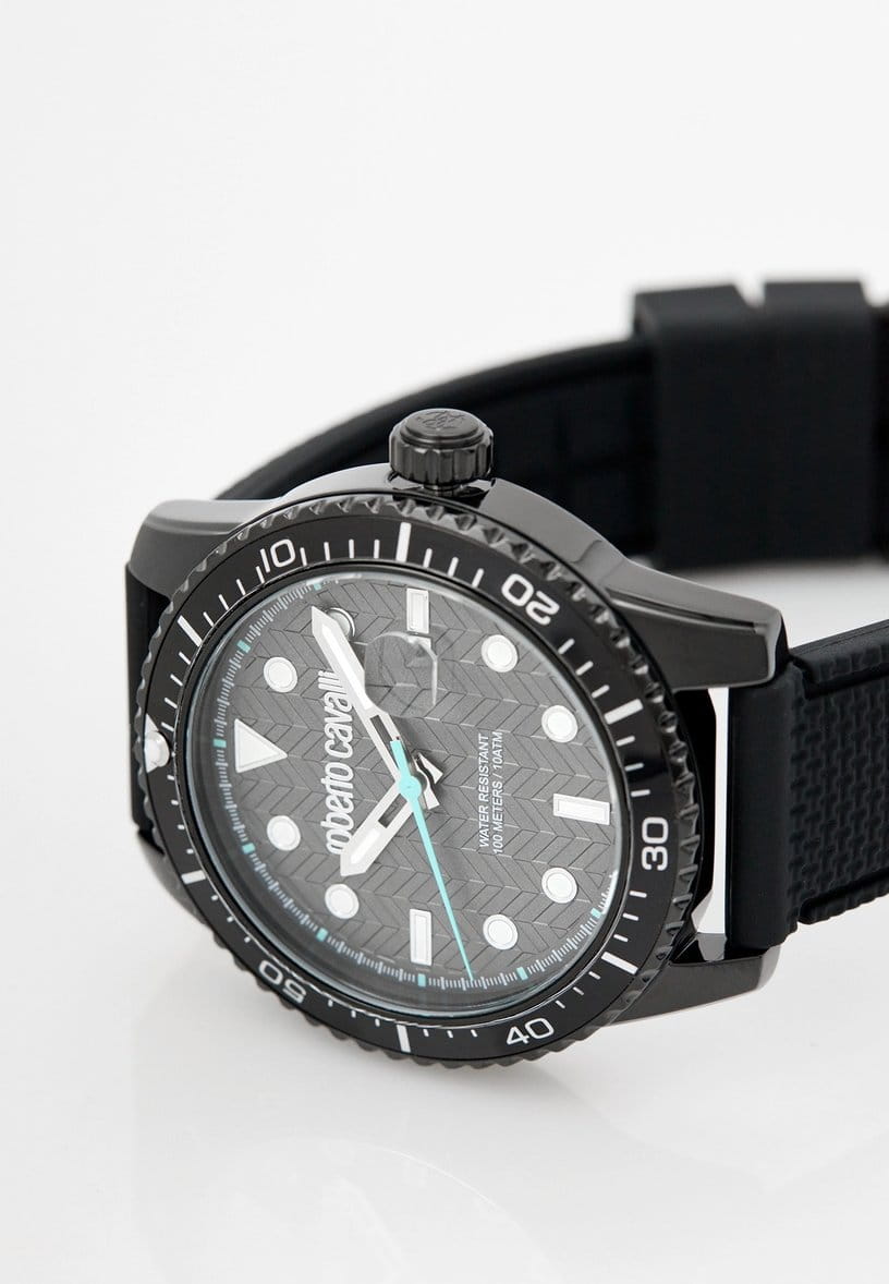 Погрузитесь в мир роскоши и безупречного стиля с мужскими наручными часами ROBERTO CAVALLI RC5G084P1045. Эти часы – воплощение смелого дизайна и итальянской элегантности, созданные для мужчины, который ценит внимание к деталям и не боится заявить о себе. Круглый корпус диаметром 42 мм выполнен из нержавеющей стали с PVD-покрытиемPVDУльтратонкое покрытие наносится в технике вакуумного напыления, сочетает в себе нитрид титана особой прочности со слоем золота или оксида хрома. Несёт в себе декоративную или защитную функцию., толщина корпуса составляет 11 мм, что придает модели выразительный внешний вид и надежную защиту от внешних воздействий. Циферблат, искусно оформленный фирменными элементами Roberto Cavalli, притягивает взгляд и подчеркивает ваш безупречный вкус. Часы оснащены кварцевым механизмом, также обладают функцией отображения даты, что делает их удобными для ежедневного использования. Минеральное стеклоМинеральное стеклоМинеральное стекло представляет собой искусственно выращенный минерал кварца. Такое стекло отличается особой устойчивостью к повреждениям и царапинам. Уступает по некоторым качествам сапфировому стеклу. защищает часы от царапин. Водозащита 100 метров, позволит плавать, нырять и заниматься другими водными видами спорта. Силиконовый ремешок на стандартной застёжке обеспечивает комфортное ношение. Поворотный безельБезельВнешний ободок, закрепляющий стекло. В спортивных часах так называется поворотное кольцо с делениями на циферблате, выполняет роль таймера – замеряет отрезки времени на шкале. Неподвижный безель – элемент декора. Однонаправленно вращающийся безель на дайверских часах позволяет фиксировать моменты погружения и выныривания на поверхность. с PVD-покрытиемPVDУльтратонкое покрытие наносится в технике вакуумного напыления, сочетает в себе нитрид титана особой прочности со слоем золота или оксида хрома. Несёт в себе декоративную или защитную функцию.. Стрелки и метки с люминесцентным покрытиемЛюминесцентное покрытиеПозволяет считывать показания времени в темноте. Производители наносят на стрелки, часовые индексы, безель или поверхность циферблата светонакопительный состав, дающий холодное свечение. обеспечивают отличную читаемость в любое время суток.