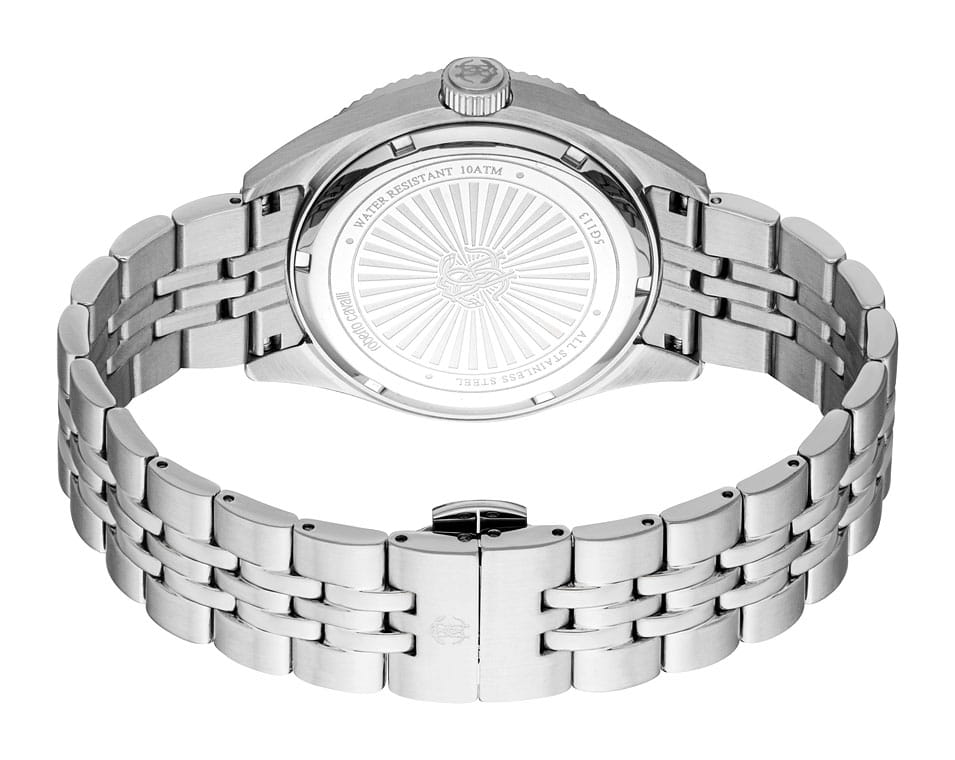 Погрузитесь в мир роскоши и безупречного стиля с мужскими наручными часами ROBERTO CAVALLI RC5G113M0055. Эти часы – воплощение смелого дизайна и итальянской элегантности, созданные для мужчины, который ценит внимание к деталям и не боится заявить о себе. Круглый корпус диаметром 40 мм выполнен из нержавеющей стали, толщина корпуса составляет 11 мм, что придает модели выразительный внешний вид и надежную защиту от внешних воздействий. Циферблат, искусно оформленный фирменными элементами Roberto Cavalli, притягивает взгляд и подчеркивает ваш безупречный вкус. Часы оснащены кварцевым механизмом, также обладают функцией отображения даты, что делает их удобными для ежедневного использования. Минеральное стеклоМинеральное стеклоМинеральное стекло представляет собой искусственно выращенный минерал кварца. Такое стекло отличается особой устойчивостью к повреждениям и царапинам. Уступает по некоторым качествам сапфировому стеклу. защищает часы от царапин. Водозащита 100 метров, позволит плавать, нырять и заниматься другими водными видами спорта. Стальной браслет на застёжке-бабочке с кнопкамиЗастёжка "бабочка"Такой вид застёжки дополняется предохранителями, помогающими избежать случайного раскрытия браслета. Обладают изящным исполнением. обеспечивает комфортное ношение. Рифленый безельБезельВнешний ободок, закрепляющий стекло. В спортивных часах так называется поворотное кольцо с делениями на циферблате, выполняет роль таймера – замеряет отрезки времени на шкале. Неподвижный безель – элемент декора. Однонаправленно вращающийся безель на дайверских часах позволяет фиксировать моменты погружения и выныривания на поверхность.. Стрелки с люминесцентным покрытиемЛюминесцентное покрытиеПозволяет считывать показания времени в темноте. Производители наносят на стрелки, часовые индексы, безель или поверхность циферблата светонакопительный состав, дающий холодное свечение. обеспечивают отличную читаемость в любое время суток.