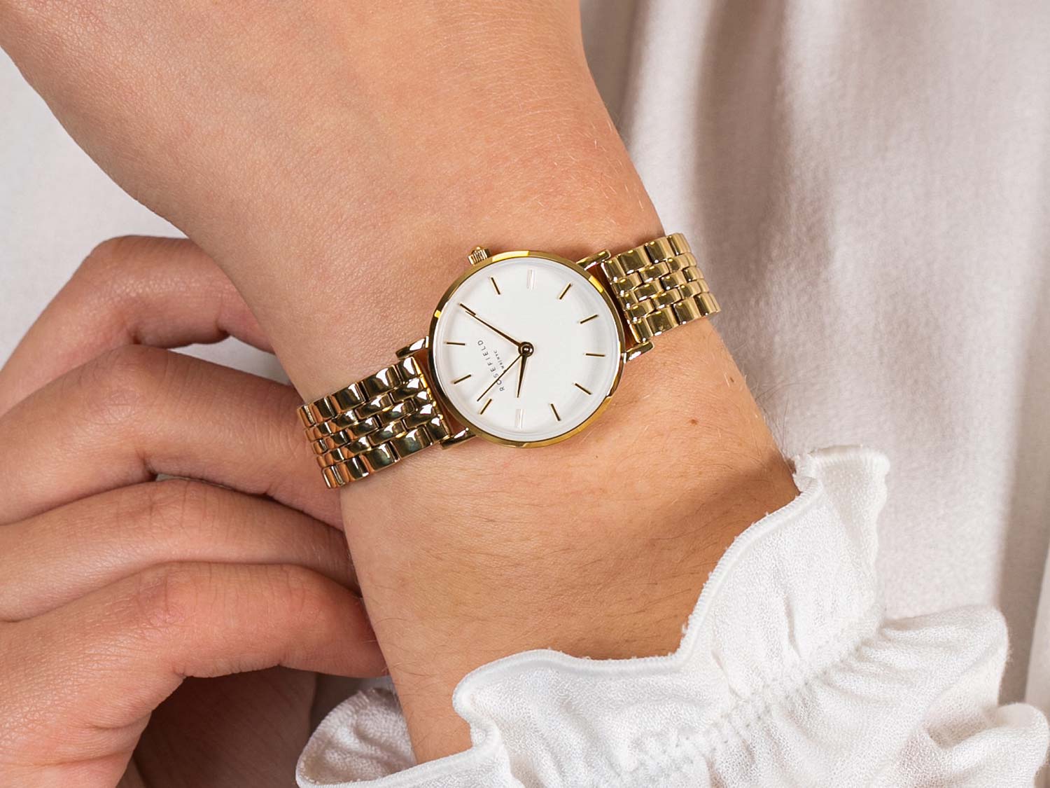 Американские женские наручные часы с кварцевым механизмом Rosefield The Small Edit 26WSG-267, кварцевый механизм с высокой точностью. Класс водозащиты: 30 метров, позволит защитить корпус от случайных брызг или капель дождя. Корпус часов изготовлен из стали, золотистого цвета.