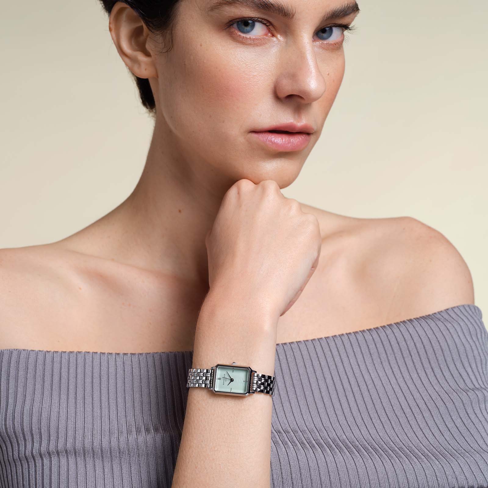 Женские кварцевые часы. Центральные часовая, минутная и секундная стрелки. Бирюзовый циферблат. Восьмиугольный корпус выполнен из полированной нержавеющей стали с IP-покрытиемIP-покрытиеМетод ионного напыления. Демонстрирует повышенную устойчивость к истиранию, окислению и химическим веществам. Под воздействием высокого давления и температуры около 1500°C молекулы металла надёжно соединяются с частицами корпуса часов. цвета желтого золота. Размер корпуса составляет 21,5 х 27,5 мм. Стальной браслет c IP-покрытиемIP-покрытиеМетод ионного напыления. Демонстрирует повышенную устойчивость к истиранию, окислению и химическим веществам. Под воздействием высокого давления и температуры около 1500°C молекулы металла надёжно соединяются с частицами корпуса часов. с ювелирной застежкой. Прочное минеральное стеклоМинеральное стеклоМинеральное стекло представляет собой искусственно выращенный минерал кварца. Такое стекло отличается особой устойчивостью к повреждениям и царапинам. Уступает по некоторым качествам сапфировому стеклу. устойчивое к мелким механическим повреждениям. Водостойкость WR 30 (брызги). В комплекте аксессуар - женский браслет.