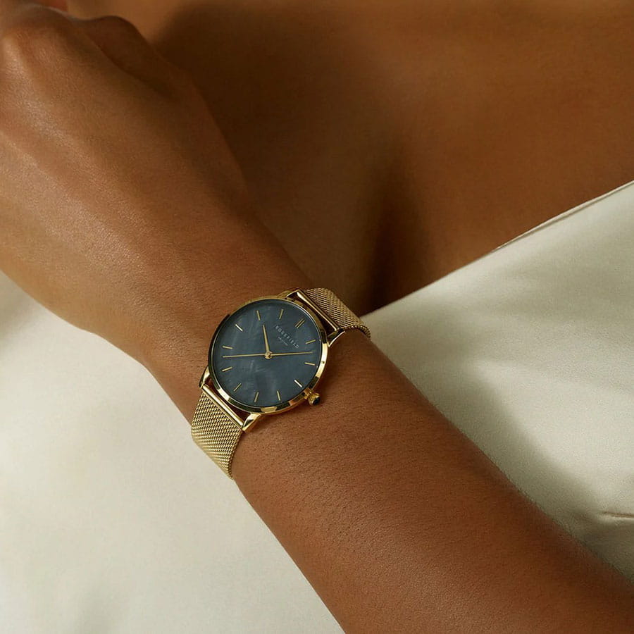 Женские кварцевые часы Rosefield RBGMG-R07. Черный перламутровый циферблат. Круглый корпус выполнен из металла с IP покрытием цвета желтого золота. Диаметр корпуса составляет 36 мм, толщина 7,5 мм. Стальной браслет с покрытием выполнен в технике миланского плетения, раскладная застежка. Прочное минеральное стекло устойчивое к мелким механическим повреждениям. Водостойкость WR 30 (брызги).