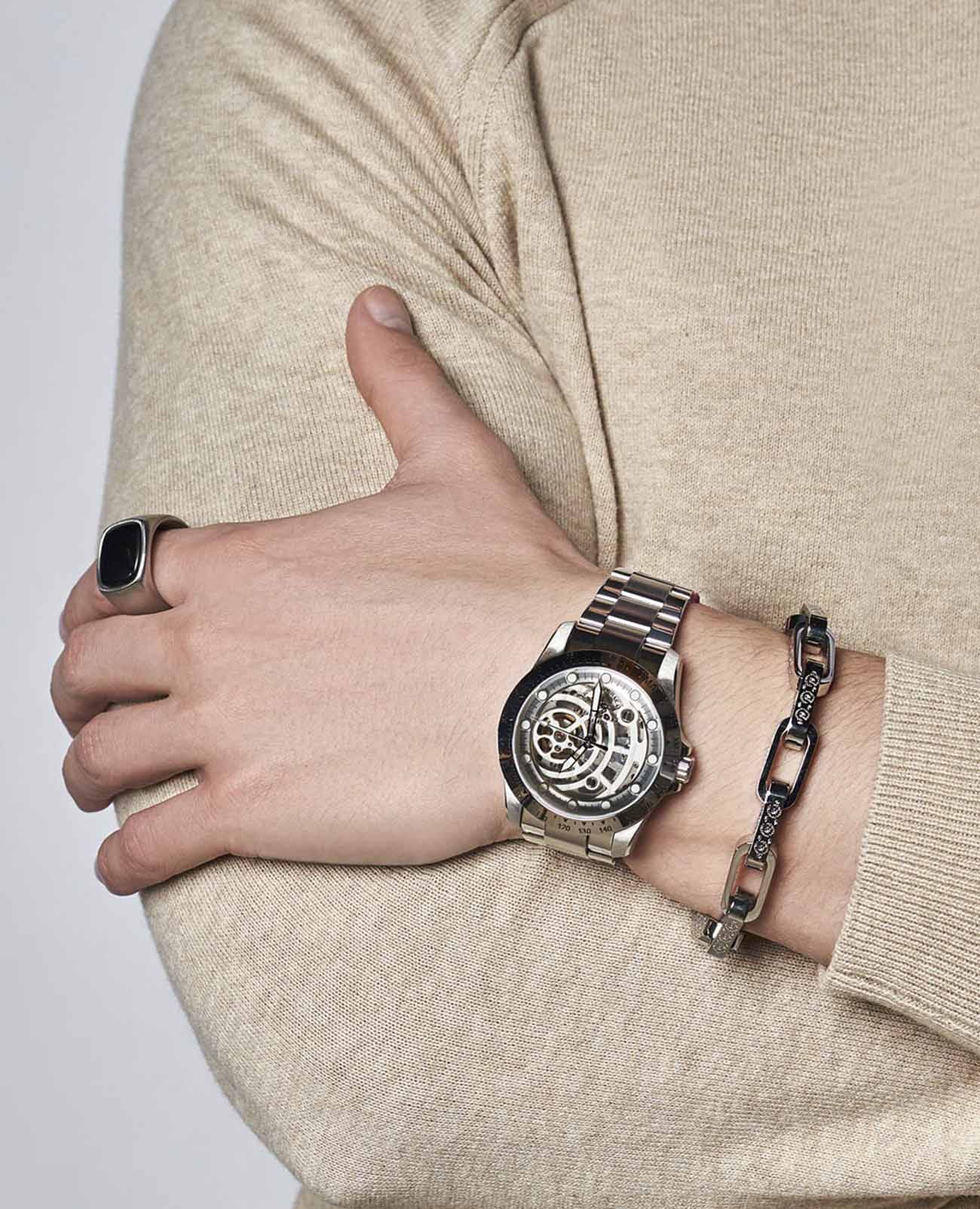 Мужские механические часы с автоподзаводом Santa Barbara Polo & Racquet Club — это эффектный аксессуар с оригинальным дизайном. Корпус диаметром 42 мм и высотой 49,5 мм выполнен из стали. Циферблат серебристого цвета частично скелетонизирован, что позволяет наблюдать за работой механизма. Двухуровневый циферблат украшен накладными метками в виде точек и фирменным логотипом. Стрелки и метки с люминесцентным покрытиемЛюминесцентное покрытиеПозволяет считывать показания времени в темноте. Производители наносят на стрелки, часовые индексы, безель или поверхность циферблата светонакопительный состав, дающий холодное свечение., обеспечивающим хорошую читаемость в темноте. Циферблат защищён минеральным стекломМинеральное стеклоМинеральное стекло представляет собой искусственно выращенный минерал кварца. Такое стекло отличается особой устойчивостью к повреждениям и царапинам. Уступает по некоторым качествам сапфировому стеклу.. Прозрачная задняя крышка открывает вид на механизм. Часы оснащены стальным браслетом с раскладной застёжкойРаскладная застёжкаТакой тип застёжки используется только на браслетах из металла. Она никогда не раскрывается полностью, происходит разделение на 2 и более частей. Раскладывающая застёжка снизит вероятность потери часов к минимуму.. Водонепроницаемость 50 м позволяет использовать часы в повседневных условиях. Идеальный выбор для тех, кто ценит технологичность, стиль и выразительность.