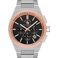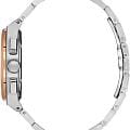 Мужские кварцевые часы Santa Barbara Polo & Racquet Club — это выразительный и функциональный аксессуар. Корпус диаметром 42 мм выполнен из нержавеющей стали 316L. БезельБезельВнешний ободок, закрепляющий стекло. В спортивных часах так называется поворотное кольцо с делениями на циферблате, выполняет роль таймера – замеряет отрезки времени на шкале. Неподвижный безель – элемент декора. Однонаправленно вращающийся безель на дайверских часах позволяет фиксировать моменты погружения и выныривания на поверхность. из стали с IP-покрытиемIP-покрытиеМетод ионного напыления. Демонстрирует повышенную устойчивость к истиранию, окислению и химическим веществам. Под воздействием высокого давления и температуры около 1500°C молекулы металла надёжно соединяются с частицами корпуса часов.. Циферблат чёрного цвета оформлен по технологии Sunray («солнечные лучи»), дополнен накладными метками в виде штрихов и фирменным логотипом. Окошко даты расположено между 4 и 5 часами. Присутствует индикация 24-часового формата времени. Стрелки мечевидной формы и метки с люминесцентным покрытиемЛюминесцентное покрытиеПозволяет считывать показания времени в темноте. Производители наносят на стрелки, часовые индексы, безель или поверхность циферблата светонакопительный состав, дающий холодное свечение., обеспечивающим хорошую читаемость в темноте. Циферблат защищён минеральным стекломМинеральное стеклоМинеральное стекло представляет собой искусственно выращенный минерал кварца. Такое стекло отличается особой устойчивостью к повреждениям и царапинам. Уступает по некоторым качествам сапфировому стеклу.. Часы оснащены стальным браслетом на застёжке «бабочка» с кнопкамиЗастёжка "бабочка"Такой вид застёжки дополняется предохранителями, помогающими избежать случайного раскрытия браслета. Обладают изящным исполнением. . Водонепроницаемость 50 м позволяет использовать часы в повседневных условиях. Идеальный выбор для тех, кто ценит стиль, точность и надёжность.