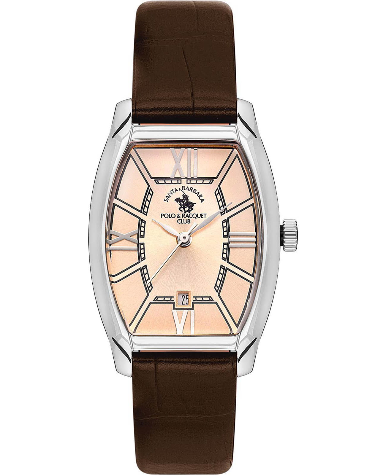 Женские кварцевые часы Santa Barbara Polo & Racquet Club Unique SB.1.10558-1 — это стильный аксессуар, подчеркивающий индивидуальность. Изысканный корпус диаметром 26 мм выполнен из нержавеющей стали 316L . Изящный циферблат выполнен по технологии Sunray (солнечные лучи), украшен фирменным логотипом, а также накладными метками в виде римских цифр. Защиту циферблата обеспечивает минеральное стеклоМинеральное стеклоМинеральное стекло представляет собой искусственно выращенный минерал кварца. Такое стекло отличается особой устойчивостью к повреждениям и царапинам. Уступает по некоторым качествам сапфировому стеклу., устойчивое к мелким механическим повреждениям. Окошко даты находится в положении 6 часов. Часы оснащены надежным и стильным кожаным ремешком со стандартной застежкой, обеспечивающим комфортное и безопасное ношение. Водонепроницаемость 50 м позволяет использовать часы в повседневных условиях. Идеальный выбор для тех, кто ценит элегантный дизайн и качество.