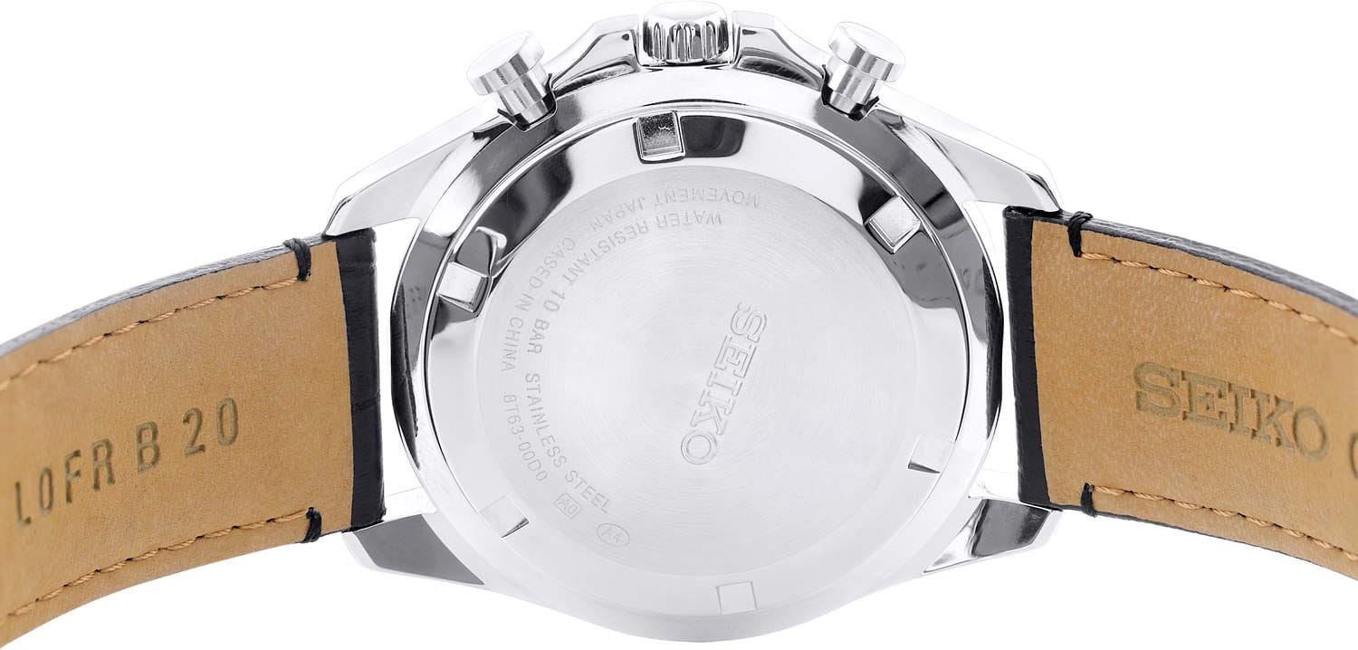 Мужские японские часы-хронографХронографФункция позволяет измерять отрезки времени с особой точностью: часы, минуты, секунды. Верным признаком хронографа является наличие на циферблате 3 дополнительных окошек-счётчиков. с секундомеромСекундомерСекундоме́р — прибор, способный измерять интервалы времени с точностью до долей секунды. Seiko Spirit Chronograph SBTR021 — это великолепное сочетание стиля и функциональности, созданное для современных искателей приключений. Минеральное стеклоМинеральное стеклоМинеральное стекло представляет собой искусственно выращенный минерал кварца. Такое стекло отличается особой устойчивостью к повреждениям и царапинам. Уступает по некоторым качествам сапфировому стеклу. с повышенной прочности Hardlex гарантирует защиту циферблата от царапин, сохраняя их безупречный вид на протяжении долгого времени. Внутри этих часов установлен кварцевый механизм, который обеспечивает высокую точность и надежность, позволяя вам всегда оставаться в курсе времени. Класс водозащиты в 100 метров позволяет вам не только плавать и нырять, но и заниматься разнообразными водными видами спорта, уверенно полагаясь на это надежное устройство, которое выдержит даже самые экстремальные условия. Корпус часов изготовлены из прочной нержавеющей стали, что укрепляет их долговечность и подчеркивает современный дизайн. Неподвижный безельБезельВнешний ободок, закрепляющий стекло. В спортивных часах так называется поворотное кольцо с делениями на циферблате, выполняет роль таймера – замеряет отрезки времени на шкале. Неподвижный безель – элемент декора. Однонаправленно вращающийся безель на дайверских часах позволяет фиксировать моменты погружения и выныривания на поверхность. с PVD-покрытиемPVDУльтратонкое покрытие наносится в технике вакуумного напыления, сочетает в себе нитрид титана особой прочности со слоем золота или оксида хрома. Несёт в себе декоративную или защитную функцию. черного цвета, диаметр 42 мм. Шкала тахиметраТахиметрРазмеченная шкала, располагается на ободке или безеле часов. Тахиметр позволяет рассчитать скорость на определённом участке пути, расстояние измеряется в километрах или милях. по внешнему краю. Удобное окошко даты в позиции между 4 и 5 часов, делает эти часы еще более практичными, позволяя быстро сверять текущую дату. Кроме того, стрелки и метки часов оснащены люминесцентным покрытиемЛюминесцентное покрытиеПозволяет считывать показания времени в темноте. Производители наносят на стрелки, часовые индексы, безель или поверхность циферблата светонакопительный состав, дающий холодное свечение., что обеспечивает отличную видимость даже в условиях низкой освещенности, поэтому вы всегда сможете узнать время, независимо от окружающей среды. Кожаный ремешок на застёжке-бабочке с кнопкамиЗастёжка "бабочка"Такой вид застёжки дополняется предохранителями, помогающими избежать случайного раскрытия браслета. Обладают изящным исполнением. обеспечивает комфорт и удобство в использовании, добавляя завершающий штрих к этому стильному и высокоэффективному аксессуару.