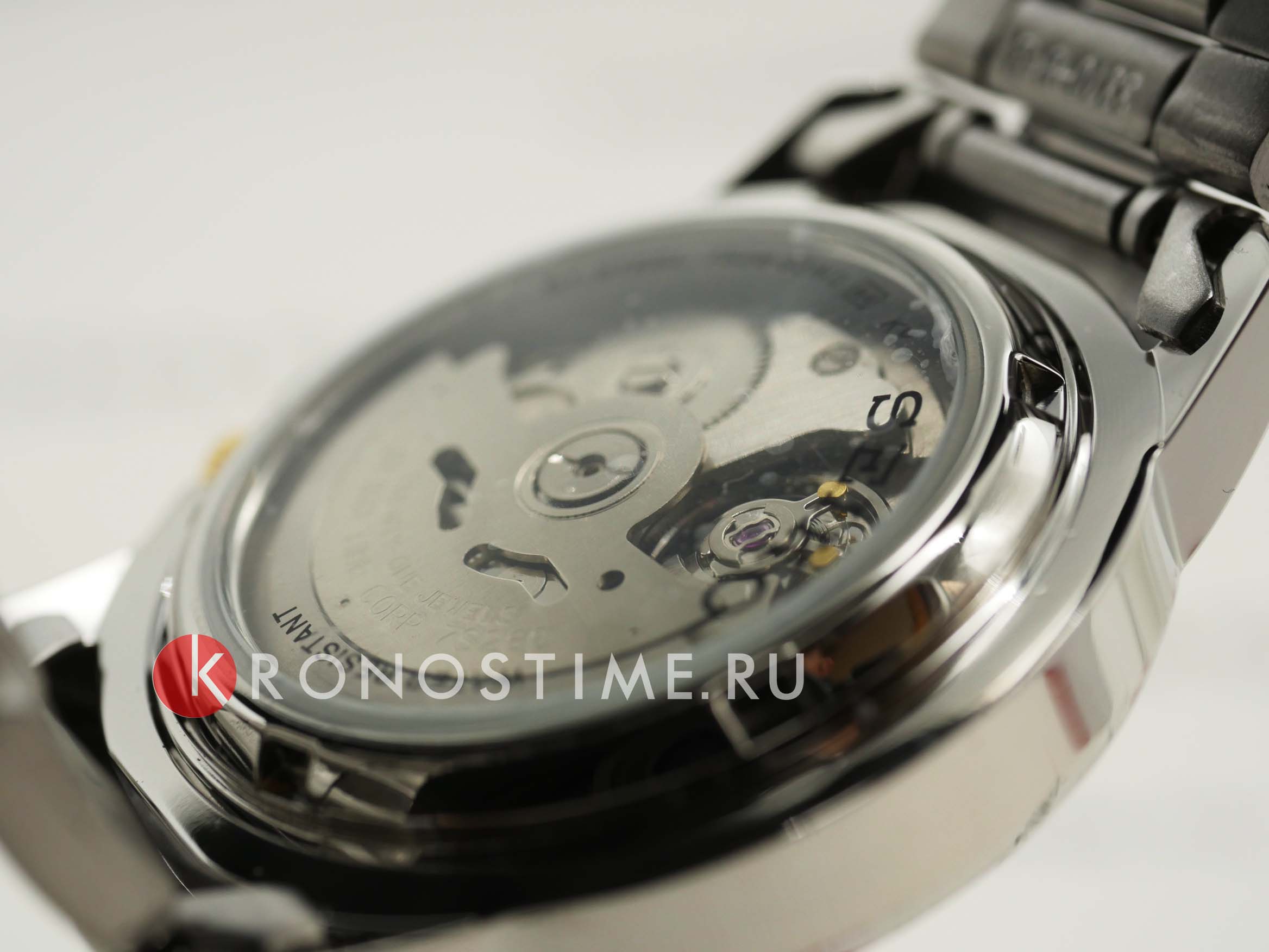 Наручные часы выполнены в классическом стиле, спортивные элементы делают акцент на надёжности и функциональности модели. Традиционный характер выражается в оснащении аксессуара японским механизмом Seiko 7S26 с возможностью ручного и автоматического завода. Калибр отличается сохранением запаса хода на 40 часов, его работу можно отследить через прозрачную завинчивающуюся заднюю крышку. В качестве основного материала была выбрана хирургическая сталь 316L, характеризующаяся устойчивостью к царапинам, повреждениям. Защиту циферблата обеспечивает прочное минеральное стеклоМинеральное стеклоМинеральное стекло представляет собой искусственно выращенный минерал кварца. Такое стекло отличается особой устойчивостью к повреждениям и царапинам. Уступает по некоторым качествам сапфировому стеклу. Hardlex. На стрелки нанесено люминесцентное покрытиеЛюминесцентное покрытиеПозволяет считывать показания времени в темноте. Производители наносят на стрелки, часовые индексы, безель или поверхность циферблата светонакопительный состав, дающий холодное свечение.. Водостойкость при давлении до 3 бар. На позиции 3 часов размещено окошко даты и дня недели. Диаметр корпуса: 38 мм.