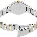Женские японские часы Seiko Discover More SUR550P1 c кварцевым механизмом с высокой точностью с калибром 6N01. Минеральное стеклоМинеральное стеклоМинеральное стекло представляет собой искусственно выращенный минерал кварца. Такое стекло отличается особой устойчивостью к повреждениям и царапинам. Уступает по некоторым качествам сапфировому стеклу. выпуклое повышенной прочности Hardlex, устойчивое к появлению царапин, обладающее высокой прозрачностью. Водозащита до 5 ATM позволяет не снимать часы при дожде, мытье рук или случайных брызгах. Корпус диаметром 30 мм и браслет часов изготовлен из нержавеющей стали с PVDPVDУльтратонкое покрытие наносится в технике вакуумного напыления, сочетает в себе нитрид титана особой прочности со слоем золота или оксида хрома. Несёт в себе декоративную или защитную функцию. покрытием. Циферблат представлен с метками в виде штрихов. Браслет с раскладной застёжкойРаскладная застёжкаТакой тип застёжки используется только на браслетах из металла. Она никогда не раскрывается полностью, происходит разделение на 2 и более частей. Раскладывающая застёжка снизит вероятность потери часов к минимуму. с фиксатором. Seiko — это гармония изящного дизайна и технологичной надёжности, компактный и стильный выбор для повседневной классики.