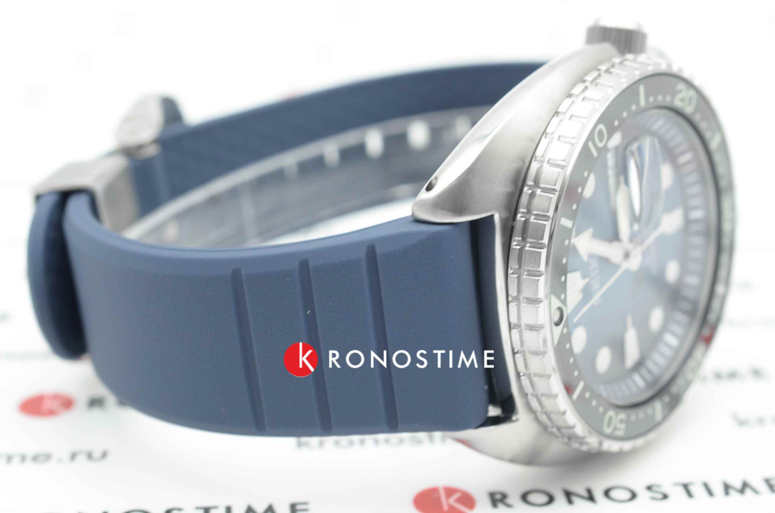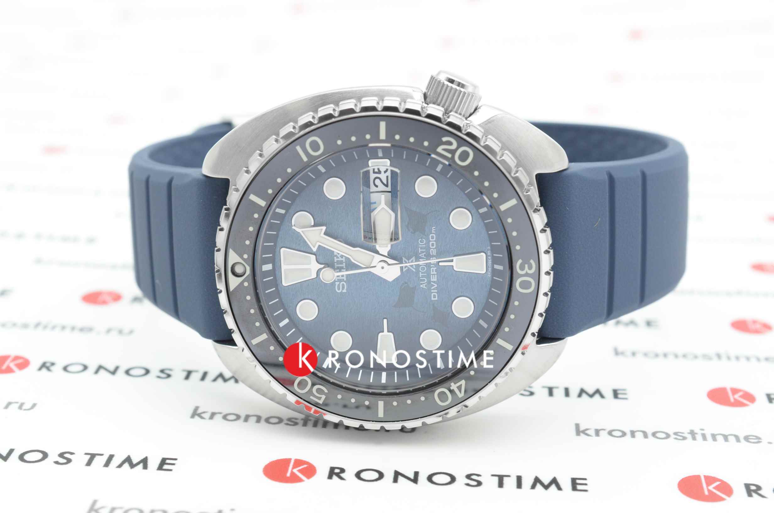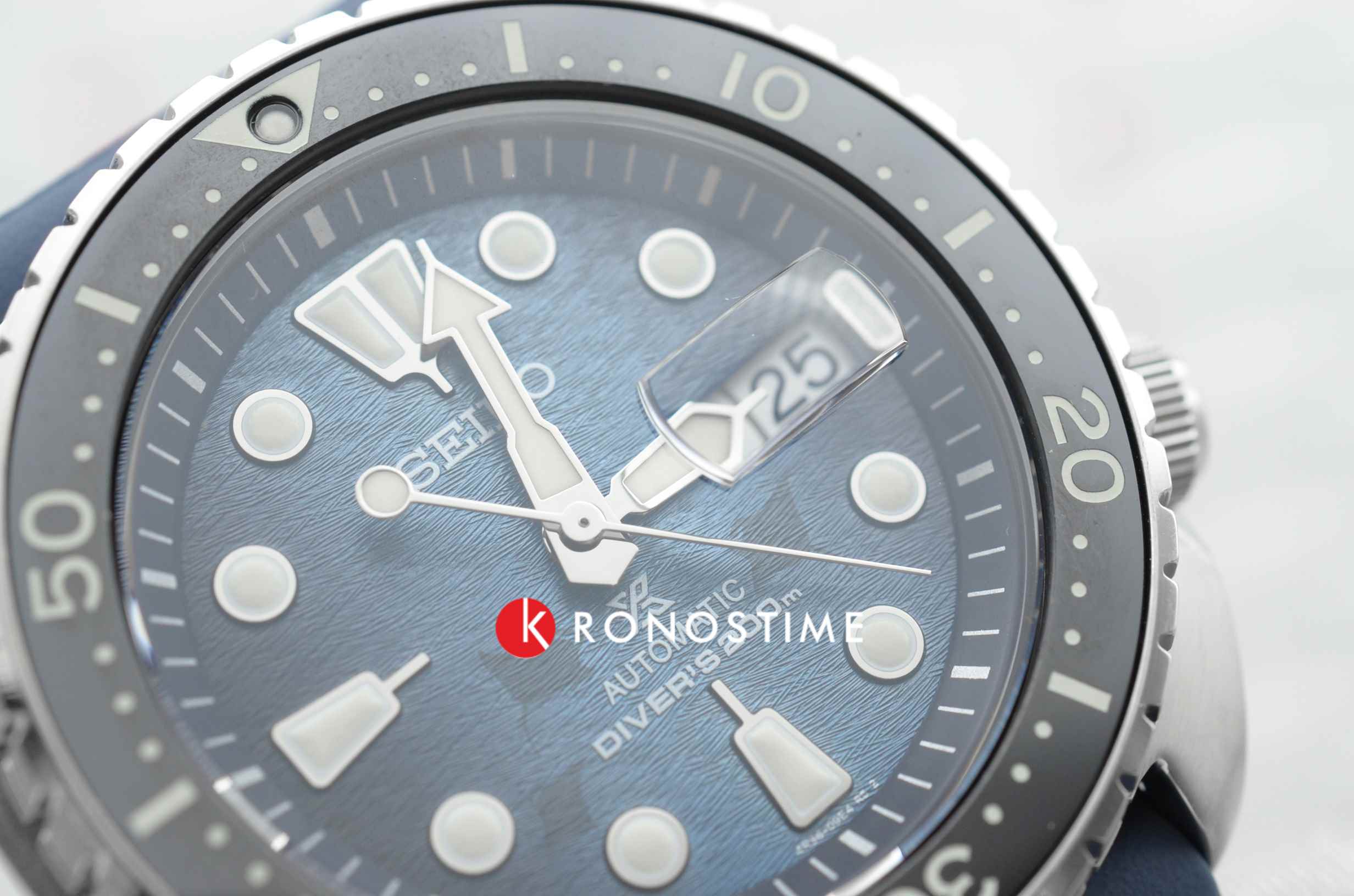 Seiko Prospex SRPF77K1 — профессиональная дайверская модель, созданная для надёжной работы в экстремальных условиях. Корпус диаметром 45 мм выполнен из нержавеющей стали с защитной «черепахообразной» формой, а односторонний вращающийся безельБезельВнешний ободок, закрепляющий стекло. В спортивных часах так называется поворотное кольцо с делениями на циферблате, выполняет роль таймера – замеряет отрезки времени на шкале. Неподвижный безель – элемент декора. Однонаправленно вращающийся безель на дайверских часах позволяет фиксировать моменты погружения и выныривания на поверхность. с PVD-покрытиемPVDУльтратонкое покрытие наносится в технике вакуумного напыления, сочетает в себе нитрид титана особой прочности со слоем золота или оксида хрома. Несёт в себе декоративную или защитную функцию. с минутной разметкой позволяет контролировать время погружения. Защитную функцию выполняет сапфировое стеклоСапфировое стеклоПрочный и надёжный материал из кристалла сапфира синтетического происхождения, характеризующийся особой твёрдостью и устойчивостью к царапинам и повреждениям. с увеличительной линзой над апертурой даты и дня недели в позиции «3 часа». В основе лежит автоматический механизм калибра 4R36 с функциями часов, минут, секунд, даты и дня недели, а также возможностью ручного завода и стоп-секундой. Водозащита 200 м (20 бар) соответствует профессиональным стандартам ISO для дайверских часов. Крупные стрелки и метки покрыты люминесцентным покрытиемЛюминесцентное покрытиеПозволяет считывать показания времени в темноте. Производители наносят на стрелки, часовые индексы, безель или поверхность циферблата светонакопительный состав, дающий холодное свечение., что обеспечивает превосходную читаемость под водой и в темноте. Часы комплектуются каучуковым ремешком с классической застёжкой, который гарантирует комфорт и устойчивость к влаге.