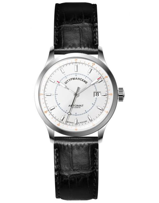 Мужские российские механические часы Штурманские NH35/1811871, механический механизм (автоматический калибр) с высокой точностью. Минеральное стеклоМинеральное стеклоМинеральное стекло представляет собой искусственно выращенный минерал кварца. Такое стекло отличается особой устойчивостью к повреждениям и царапинам. Уступает по некоторым качествам сапфировому стеклу. устойчивое к мелким механическим повреждениям. Класс водозащиты: 50 метров, позволит защитить корпус от случайных брызг или капель дождя. Корпус часов изготовлен из стали. Кожаный ремешок на стандартной застёжке. Чёткая, читаемая минутная шкала уходит за приделы видимой области циферблата, подчёркивая изящность ободка корпуса. Стрелки и метки с люминесцентным покрытиемЛюминесцентное покрытиеПозволяет считывать показания времени в темноте. Производители наносят на стрелки, часовые индексы, безель или поверхность циферблата светонакопительный состав, дающий холодное свечение..