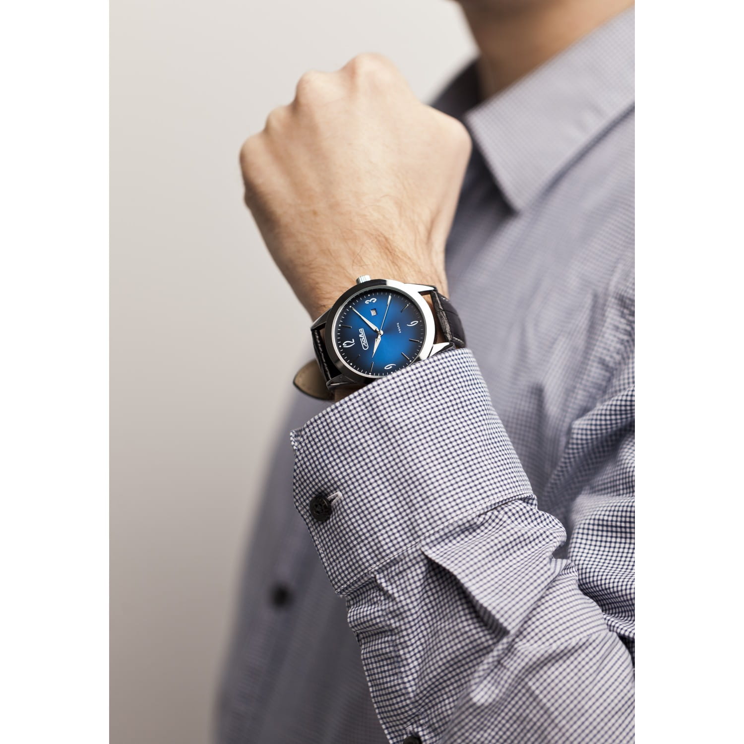 Класс водозащиты часов составляет 30 метров, что позволяет защитить корпус от случайных брызг и капель дождя.Кожаный ремешок на стандартной застежке. Эти часы идеально подойдут для повседневного использования, сочетая в себе стиль, надежность и функциональность.
