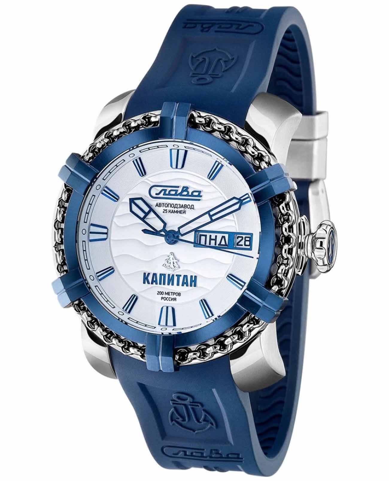 Российские механические наручные часы Слава Капитан 2470354/800-2427 — идеальный выбор для мужчин, ценящих стиль и надежность. Эта уникальная модель выпущена ограниченной серией в 500 экземпляров и сочетает в себе модный дизайн и высокое качество исполнения. Корпус часов выполнен из прочной стали и имеет диаметр 44 мм и толщину 16 мм, что придает им солидный и мужественный вид. БезельБезельВнешний ободок, закрепляющий стекло. В спортивных часах так называется поворотное кольцо с делениями на циферблате, выполняет роль таймера – замеряет отрезки времени на шкале. Неподвижный безель – элемент декора. Однонаправленно вращающийся безель на дайверских часах позволяет фиксировать моменты погружения и выныривания на поверхность. часов с IP-покрытиемIP-покрытиеМетод ионного напыления. Демонстрирует повышенную устойчивость к истиранию, окислению и химическим веществам. Под воздействием высокого давления и температуры около 1500°C молекулы металла надёжно соединяются с частицами корпуса часов. покрытием сине-серебристого цвета, выполненный в форме штурвала под стать названию коллекции "Капитан", придаёт часам неповторимый морской характер и стиль. Водозащита до 20 ATM позволяет использовать часы даже при погружении в воду, что делает их отличным выбором для активных мужчин. Белый циферблат с метками и сапфировое стеклоСапфировое стеклоПрочный и надёжный материал из кристалла сапфира синтетического происхождения, характеризующийся особой твёрдостью и устойчивостью к царапинам и повреждениям. обеспечивают долговечность и устойчивость к царапинам. Механический механизм "Слава 2427" с автоподзаводом и возможностью ручного подзавода гарантирует точность и надежность, а двойной календарь добавляет функциональности. На 3 часах расположено окошко с указателем даты и дня недели. Часы комплектуются прочным силиконовым ремешком со стандартной застежкой, обеспечивающим комфорт и надежную фиксацию на запястье. Задняя крышка крепится на 4-х винтах и украшена объемным изображением якоря. Индивидуальный серийный номер. Упакованы в стильную подарочную коробку из экокожи, они станут отличным подарком для любого особого случая. С часами Слава из коллекции Капитан вы подчеркнете свой статус и вкус, оставаясь верным российским традициям качества и стиля.
