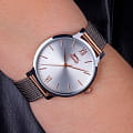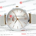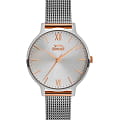 Элегантные женские часы Slazenger SL.09.1823.2.04 сочетают классический дизайн и современные технологии. Модель имеет круглый корпус диаметром 34 мм, изготовленный из суперметалла, что обеспечивает высокую устойчивость к внешним воздействиям. Браслет выполнен в технике миланского плетения с частичным IP-покрытиемIP-покрытиеМетод ионного напыления. Демонстрирует повышенную устойчивость к истиранию, окислению и химическим веществам. Под воздействием высокого давления и температуры около 1500°C молекулы металла надёжно соединяются с частицами корпуса часов. на  раскладном замкеРаскладной замокДанный вариант застежки используется только на часах с металлическим браслетом. Отличительная особенность такого крепления в том, что длина браслета становится универсальной и вы можете самостоятельно отрегулировать нужный вам размер – застежка просто двигается по браслету часов., гарантирующей комфортное ношение и безопасность. Циферблат серебристого оттенка декорирован розово-золотистыми стрелками и римскими цифрами, создавая благородный внешний вид. Для защиты используется минеральное стекло Минеральное стеклоМинеральное стеклоМинеральное стекло представляет собой искусственно выращенный минерал кварца. Такое стекло отличается особой устойчивостью к повреждениям и царапинам. Уступает по некоторым качествам сапфировому стеклу., обеспечивающее прочную защиту от царапин. Информация о водонепроницаемости модели не указана, однако она предназначена для повседневного использования. Часы работают на кварцевом механизме, обеспечивающем точное время без необходимости подзаводки. SL.09.1823.2.04 — это стильный аксессуар, который отлично дополнит как деловой, так и casual образ.