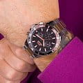 Мужские наручные часы Slazenger SL.09.2065.2.04 из коллекции современных аксессуаров сочетают в себе элегантный дизайн и функциональность. Модель обладает круглым корпусом диаметром 46 мм, изготовленным из суперметалла с серебристым покрытием, что обеспечивает высокую устойчивость к внешним воздействиям. БезельБезельВнешний ободок, закрепляющий стекло. В спортивных часах так называется поворотное кольцо с делениями на циферблате, выполняет роль таймера – замеряет отрезки времени на шкале. Неподвижный безель – элемент декора. Однонаправленно вращающийся безель на дайверских часах позволяет фиксировать моменты погружения и выныривания на поверхность. с IP-покрытиемIP-покрытиеМетод ионного напыления. Демонстрирует повышенную устойчивость к истиранию, окислению и химическим веществам. Под воздействием высокого давления и температуры около 1500°C молекулы металла надёжно соединяются с частицами корпуса часов.. Черный циферблат украшен логотипом бренда и метками времени, а для лучшей видимости в темноте стрелки и метки имеют люминесцентное покрытиеЛюминесцентное покрытиеПозволяет считывать показания времени в темноте. Производители наносят на стрелки, часовые индексы, безель или поверхность циферблата светонакопительный состав, дающий холодное свечение.. Для защиты используется минеральное стеклоМинеральное стеклоМинеральное стекло представляет собой искусственно выращенный минерал кварца. Такое стекло отличается особой устойчивостью к повреждениям и царапинам. Уступает по некоторым качествам сапфировому стеклу., обеспечивающее прочную защиту от царапин. Часы работают на японском кварцевом механизме, что гарантирует точное время без необходимости подзаводки. Браслет выполнен из суперметалла с частичным IP-покрытиемIP-покрытиеМетод ионного напыления. Демонстрирует повышенную устойчивость к истиранию, окислению и химическим веществам. Под воздействием высокого давления и температуры около 1500°C молекулы металла надёжно соединяются с частицами корпуса часов., гарантирующей комфортное ношение и стильный внешний вид. Водонепроницаемость часов составляет 5 атмосфер (WR50), что позволяет использовать их при легком контакте с водой, например, во время мытья рук, но не рекомендуется для плавания или дайвинга.