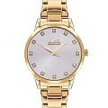 Женские наручные часы Slazenger SL.09.2071.3.08 представляют собой элегантное сочетание классики и современных технологий. Модель обладает круглым корпусом диаметром 32 мм, изготовленным из суперметалла с IP-покрытиемIP-покрытиеМетод ионного напыления. Демонстрирует повышенную устойчивость к истиранию, окислению и химическим веществам. Под воздействием высокого давления и температуры около 1500°C молекулы металла надёжно соединяются с частицами корпуса часов., что обеспечивает высокую устойчивость к внешним воздействиям и привлекательный внешний вид. Браслет выполнен с частичным IP-покрытиемIP-покрытиеМетод ионного напыления. Демонстрирует повышенную устойчивость к истиранию, окислению и химическим веществам. Под воздействием высокого давления и температуры около 1500°C молекулы металла надёжно соединяются с частицами корпуса часов. золотистого цвета и оснащен раскладной застежкойРаскладной замокДанный вариант застежки используется только на часах с металлическим браслетом. Отличительная особенность такого крепления в том, что длина браслета становится универсальной и вы можете самостоятельно отрегулировать нужный вам размер – застежка просто двигается по браслету часов., гарантирующей комфортное ношение и безопасность. Серебристый циферблат украшен фианитами, добавляя модели особую роскошь. Для защиты используется минеральное стеклоМинеральное стеклоМинеральное стекло представляет собой искусственно выращенный минерал кварца. Такое стекло отличается особой устойчивостью к повреждениям и царапинам. Уступает по некоторым качествам сапфировому стеклу., обеспечивающее прочную защиту от царапин. Стрелки с люминесцентным покрытиемЛюминесцентное покрытиеПозволяет считывать показания времени в темноте. Производители наносят на стрелки, часовые индексы, безель или поверхность циферблата светонакопительный состав, дающий холодное свечение.. Часы работают на японском кварцевом механизме, что гарантирует точное время без необходимости подзаводки. Водонепроницаемость достигает 3 атмосфер (WR30), что позволяет использовать их при контакте с брызгами воды, однако не рекомендуется для плавания или дайвинга. Вес часов составляет 76 грамм, делая их удобными для повседневного использования.