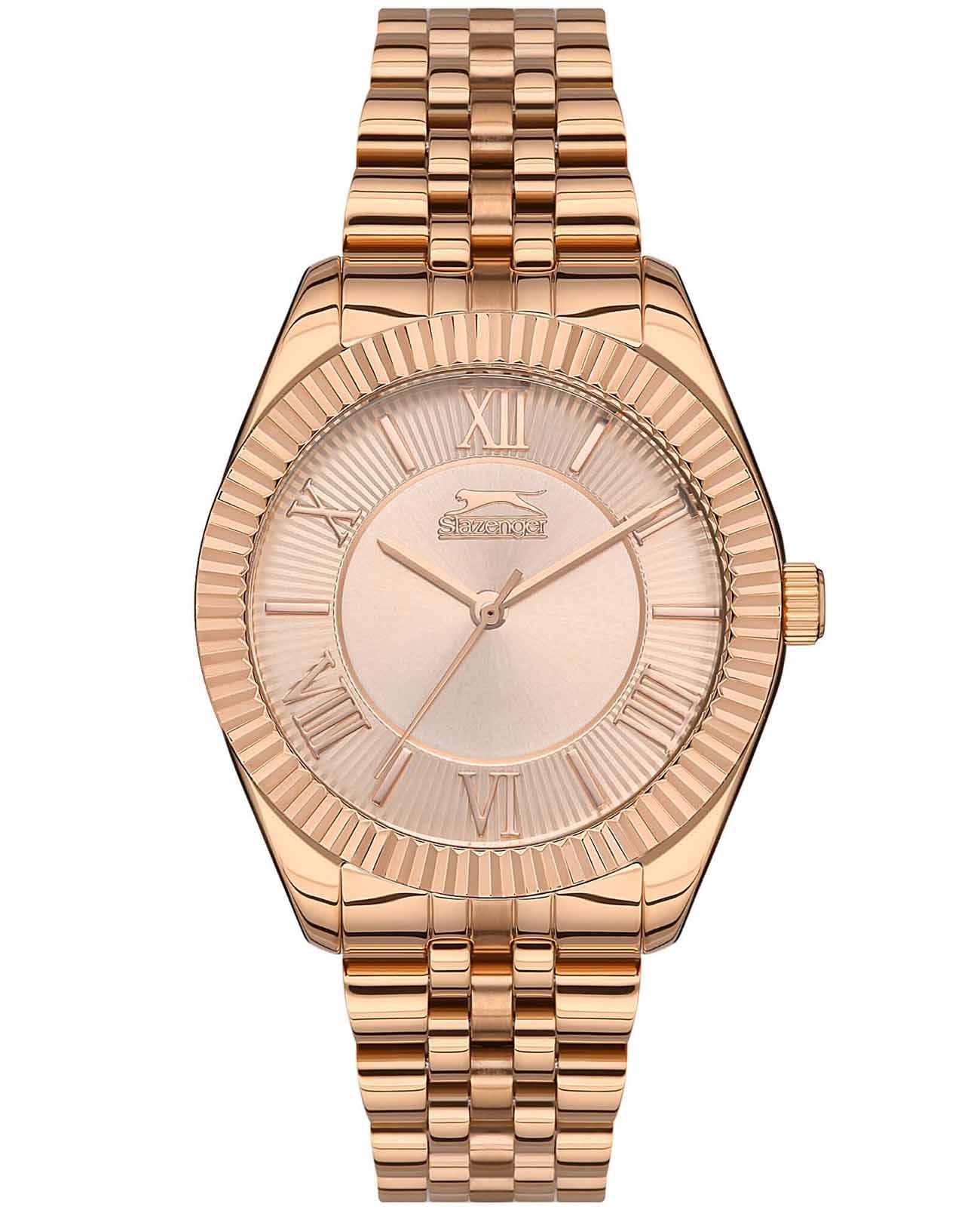 Часы Slazenger SL.09.2150.3.05 представляют собой элегантное сочетание стиля и функциональности. Эти часы отличаются высоким качеством и утонченным дизайном. Кварцевый механизм обеспечивает точность хода, а корпус диаметром 36 мм выполнен из прочного суперметалла с розово-золотистым IP-покрытиемIP-покрытиеМетод ионного напыления. Демонстрирует повышенную устойчивость к истиранию, окислению и химическим веществам. Под воздействием высокого давления и температуры около 1500°C молекулы металла надёжно соединяются с частицами корпуса часов., что гарантирует долговечность использования. Минеральное стеклоМинеральное стеклоМинеральное стекло представляет собой искусственно выращенный минерал кварца. Такое стекло отличается особой устойчивостью к повреждениям и царапинам. Уступает по некоторым качествам сапфировому стеклу. надежно защищает циферблат от царапин и повреждений. Круглый корпус украшен рифленым безелемБезельВнешний ободок, закрепляющий стекло. В спортивных часах так называется поворотное кольцо с делениями на циферблате, выполняет роль таймера – замеряет отрезки времени на шкале. Неподвижный безель – элемент декора. Однонаправленно вращающийся безель на дайверских часах позволяет фиксировать моменты погружения и выныривания на поверхность. с розово-золотистым IP-покрытиемIP-покрытиеМетод ионного напыления. Демонстрирует повышенную устойчивость к истиранию, окислению и химическим веществам. Под воздействием высокого давления и температуры около 1500°C молекулы металла надёжно соединяются с частицами корпуса часов., что придает часам особый стиль. Розово-золотистый металлический браслет с IP-покрытиемIP-покрытиеМетод ионного напыления. Демонстрирует повышенную устойчивость к истиранию, окислению и химическим веществам. Под воздействием высокого давления и температуры около 1500°C молекулы металла надёжно соединяются с частицами корпуса часов. оснащен раскладной застёжкойРаскладная застёжкаТакой тип застёжки используется только на браслетах из металла. Она никогда не раскрывается полностью, происходит разделение на 2 и более частей. Раскладывающая застёжка снизит вероятность потери часов к минимуму., что обеспечивает комфортное ношение и надежную фиксацию на запястье. Общий вес часов составляет 85 грамм, что делает их легкими и удобными для повседневного использования. Уровень водозащиты WR 30 позволяет не беспокоиться о случайных попаданиях воды. Эти часы станут идеальным выбором для женщин, ценящих сочетание классического дизайна и надежности.