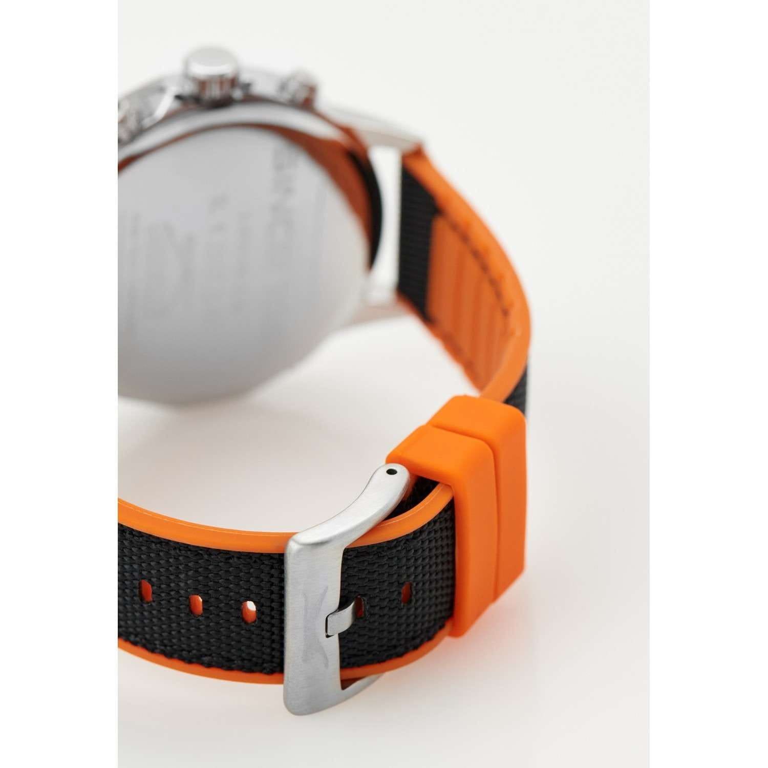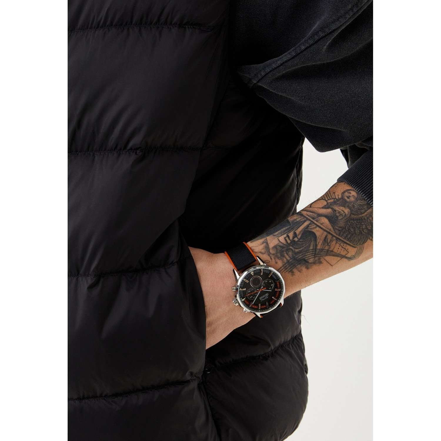 Стильные мужские наручные часы Slazenger SL.09.2217.2.01 станут идеальным аксессуаром для современного мужчины. Этот британский бренд славится своим качеством и надежностью, а данная модель не является исключением. Часы оснащены кварцевым механизмом, что обеспечивает точность хода и долговечность использования. Корпус часов выполнен из металла, а прочное минеральное стеклоМинеральное стеклоМинеральное стекло представляет собой искусственно выращенный минерал кварца. Такое стекло отличается особой устойчивостью к повреждениям и царапинам. Уступает по некоторым качествам сапфировому стеклу. защищает циферблат от царапин и повреждений. Элегантный черный тканевый ремешок на оранжевом силиконовом основании с классической застежкой, что гарантирует комфортное ношение на запястье. Ширина браслета составляет 22 мм, что придает часам солидный вид. Диаметр корпуса равен 45 мм, а толщина 12 мм, что делает эту модель заметной, но в то же время не громоздкой. Водозащита уровня WR 50 позволяет использовать часы в повседневной жизни, не беспокоясь о случайных попаданиях воды. Стрелки снабжены люминесцентным покрытиемЛюминесцентное покрытиеПозволяет считывать показания времени в темноте. Производители наносят на стрелки, часовые индексы, безель или поверхность циферблата светонакопительный состав, дающий холодное свечение., что позволяет легко считывать время в темноте. Функциональные возможности часов включают отображение даты, дня недели и времени в 24-часовом формате на дополнительных малых циферблатах. Это делает модель не только стильной, но и практичной в использовании.