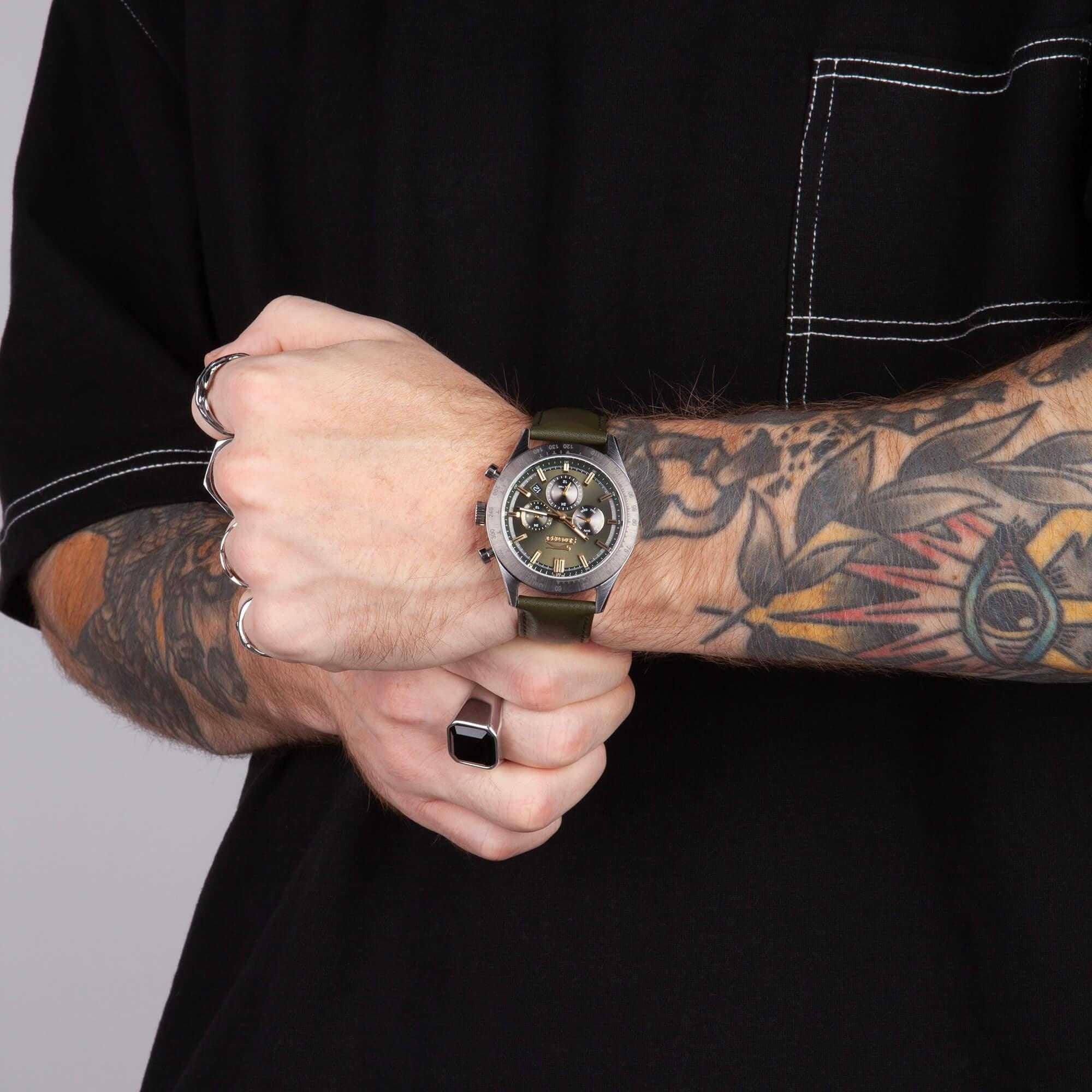 Мужские кварцевые часы Slazenger SL.09.2359.2.02 – идеальное сочетание классического дизайна и современных технологий, созданное для уверенных в себе мужчин. Корпус выполнен из суперметалла серебристого цвета, диаметром 43 мм и толщиной 11 мм, подчёркивает надежность модели и делает их идеальным аксессуаром для любой ситуации – будь то деловая встреча или повседневные выходы. Циферблат надёжно защищён минеральным стекломМинеральное стеклоМинеральное стекло представляет собой искусственно выращенный минерал кварца. Такое стекло отличается особой устойчивостью к повреждениям и царапинам. Уступает по некоторым качествам сапфировому стеклу., которое устойчиво к механическим повреждениям и сохраняет кристальную прозрачность. Неподвижный безельБезельВнешний ободок, закрепляющий стекло. В спортивных часах так называется поворотное кольцо с делениями на циферблате, выполняет роль таймера – замеряет отрезки времени на шкале. Неподвижный безель – элемент декора. Однонаправленно вращающийся безель на дайверских часах позволяет фиксировать моменты погружения и выныривания на поверхность. с IP-покрытиемIP-покрытиеМетод ионного напыления. Демонстрирует повышенную устойчивость к истиранию, окислению и химическим веществам. Под воздействием высокого давления и температуры около 1500°C молекулы металла надёжно соединяются с частицами корпуса часов.. Кожаный ремешок на стандартной застёжке удобно облегает запястье, обеспечивая надёжность и комфорт в повседневном ношении. Стрелки покрыты люминесцентным покрытиемЛюминесцентное покрытиеПозволяет считывать показания времени в темноте. Производители наносят на стрелки, часовые индексы, безель или поверхность циферблата светонакопительный состав, дающий холодное свечение., обеспечивающим отличную читаемость в темноте. Эти часы станут не просто аксессуаром, а надежным спутником в любой ситуации, подчеркивая ваш безупречный вкус и деловой стиль. Вынесенный циферблат с 24-х часовым указателем времени и функция тахиметраТахиметрРазмеченная шкала, располагается на ободке или безеле часов. Тахиметр позволяет рассчитать скорость на определённом участке пути, расстояние измеряется в километрах или милях.. Водозащита 50 метров позволит защитить корпус от случайных брызг или капель дождя.