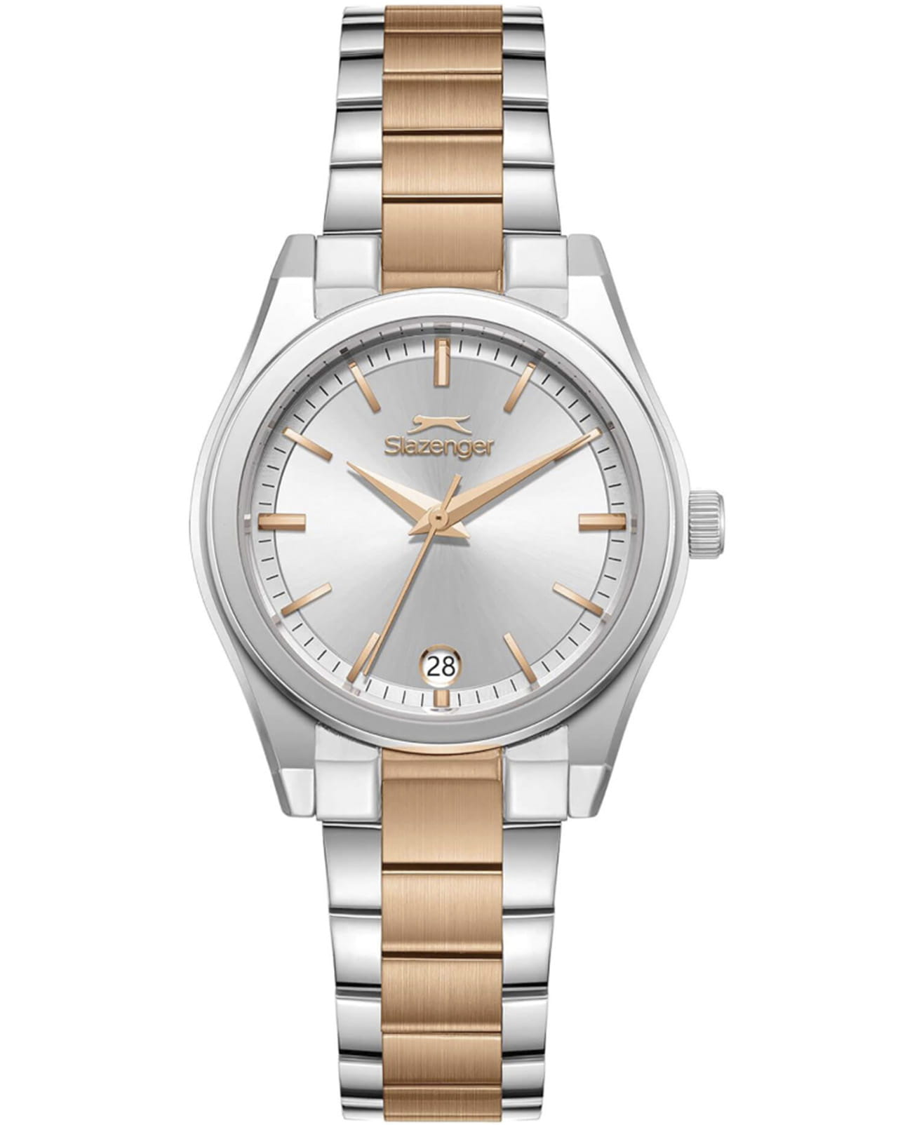 Женские кварцевые часы Slazenger — это элегантный аксессуар. Корпус диаметром 32 мм и толщиной 8 мм выполнен из суперметалла. Циферблат серебристого цвета оформлен индексами и стрелками. Циферблат защищён минеральным стекломМинеральное стеклоМинеральное стекло представляет собой искусственно выращенный минерал кварца. Такое стекло отличается особой устойчивостью к повреждениям и царапинам. Уступает по некоторым качествам сапфировому стеклу.. Механизм — кварцевый. Окошко даты расположено в положении 6 часов. Часы оснащены браслетом из суперметалла с IP-покрытиемIP-покрытиеМетод ионного напыления. Демонстрирует повышенную устойчивость к истиранию, окислению и химическим веществам. Под воздействием высокого давления и температуры около 1500°C молекулы металла надёжно соединяются с частицами корпуса часов. на застёжке «бабочка» с кнопкамиЗастёжка "бабочка"Такой вид застёжки дополняется предохранителями, помогающими избежать случайного раскрытия браслета. Обладают изящным исполнением. . Водонепроницаемость 50 м позволяет использовать часы в повседневных условиях. Гарантия — 12 месяцев. Идеальный выбор для тех, кто ценит стиль и качество.