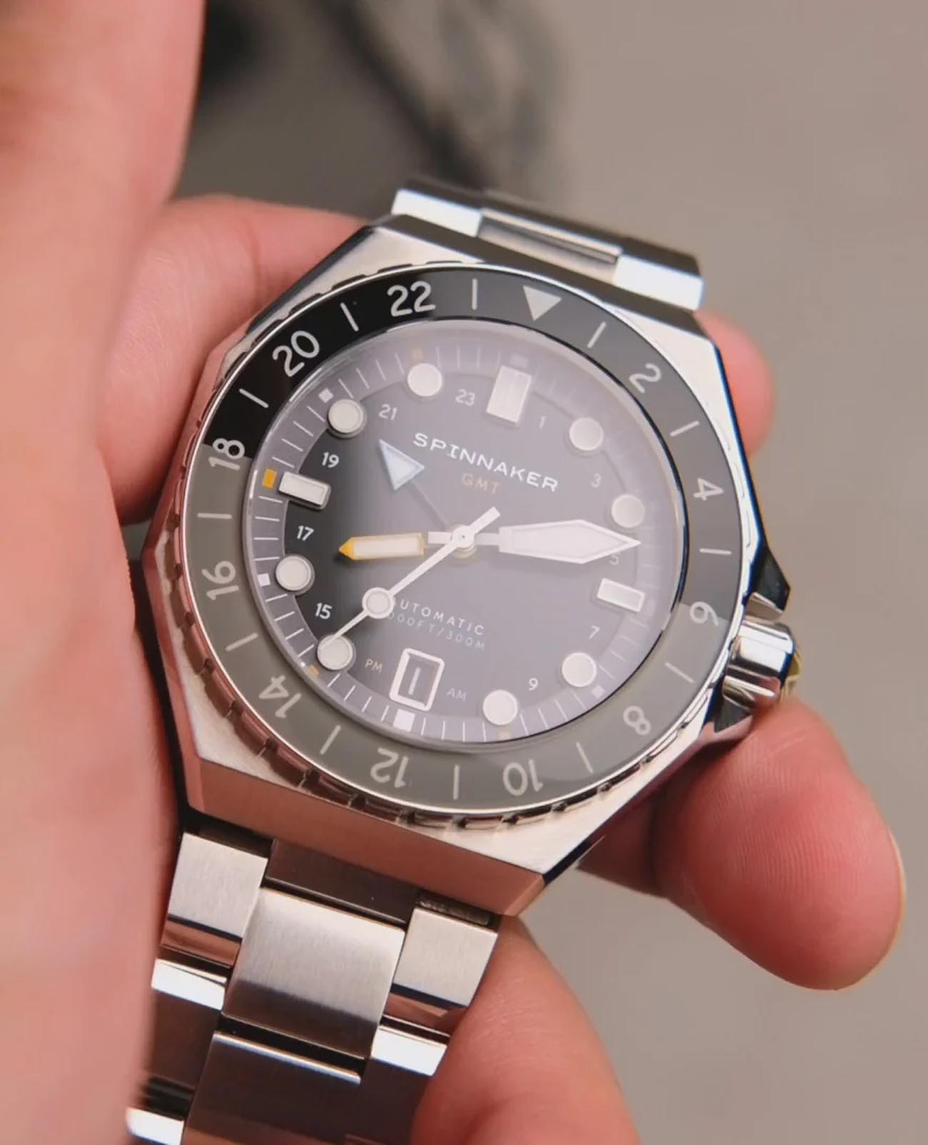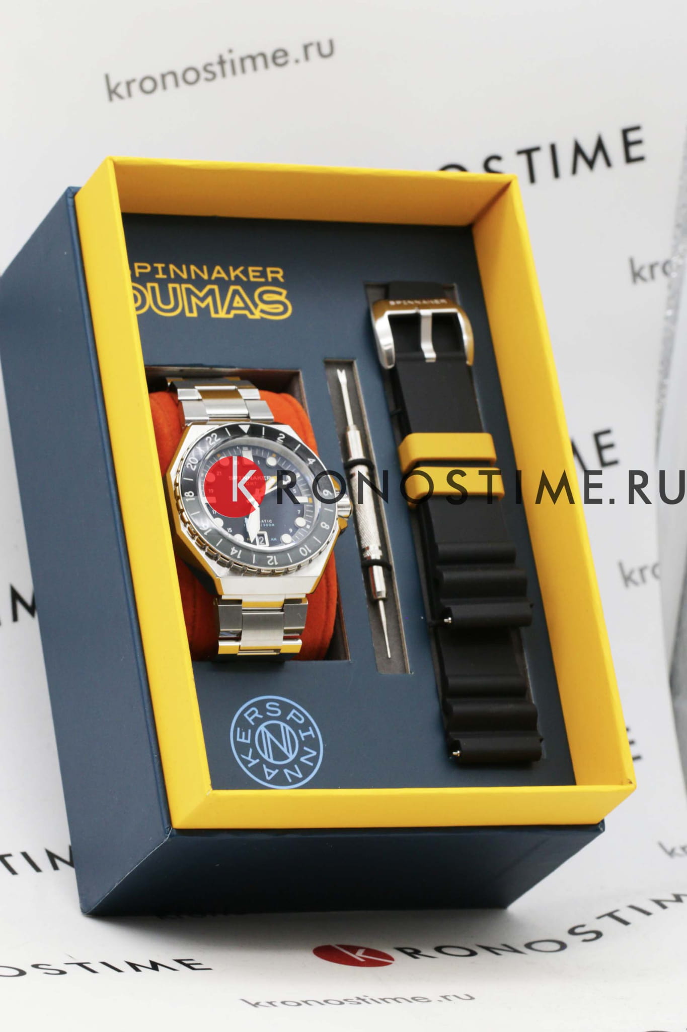 Мужские итальянские механические часы с автоподзаводом Spinnaker Dumas GMTGMTОтображение времени второго часового пояса.Такая функция особенно актуальна для путешественников и бизнесменов,которые общаются с людьми из разных стран,теперь вы всегда будете знать,какой час у вашего партнёра или близкого человека. SP-5119-11, механический механизм (автоматический калибр) с высокой точностью. Циферблат с люминесцентным покрытиемЛюминесцентное покрытиеПозволяет считывать показания времени в темноте. Производители наносят на стрелки, часовые индексы, безель или поверхность циферблата светонакопительный состав, дающий холодное свечение. стрелок, меток и безеляБезельВнешний ободок, закрепляющий стекло. В спортивных часах так называется поворотное кольцо с делениями на циферблате, выполняет роль таймера – замеряет отрезки времени на шкале. Неподвижный безель – элемент декора. Однонаправленно вращающийся безель на дайверских часах позволяет фиксировать моменты погружения и выныривания на поверхность. дополнен сапфировым стекломСапфировое стеклоПрочный и надёжный материал из кристалла сапфира синтетического происхождения, характеризующийся особой твёрдостью и устойчивостью к царапинам и повреждениям. с антибликовым покрытием, устойчивым к появлению царапин и обладающее высокой прозрачностью. Класс водозащиты: 300 метров (погружение с аквалангом). Корпус часов изготовлен из нержавеющей стали 316L. Вращающийся безельБезельВнешний ободок, закрепляющий стекло. В спортивных часах так называется поворотное кольцо с делениями на циферблате, выполняет роль таймера – замеряет отрезки времени на шкале. Неподвижный безель – элемент декора. Однонаправленно вращающийся безель на дайверских часах позволяет фиксировать моменты погружения и выныривания на поверхность. с IP-покрытиемIP-покрытиеМетод ионного напыления. Демонстрирует повышенную устойчивость к истиранию, окислению и химическим веществам. Под воздействием высокого давления и температуры около 1500°C молекулы металла надёжно соединяются с частицами корпуса часов.. Стальной браслет на раскладной застёжкеРаскладная застёжкаТакой тип застёжки используется только на браслетах из металла. Она никогда не раскрывается полностью, происходит разделение на 2 и более частей. Раскладывающая застёжка снизит вероятность потери часов к минимуму.. В комплект входит сменный силиконовый ремешок.