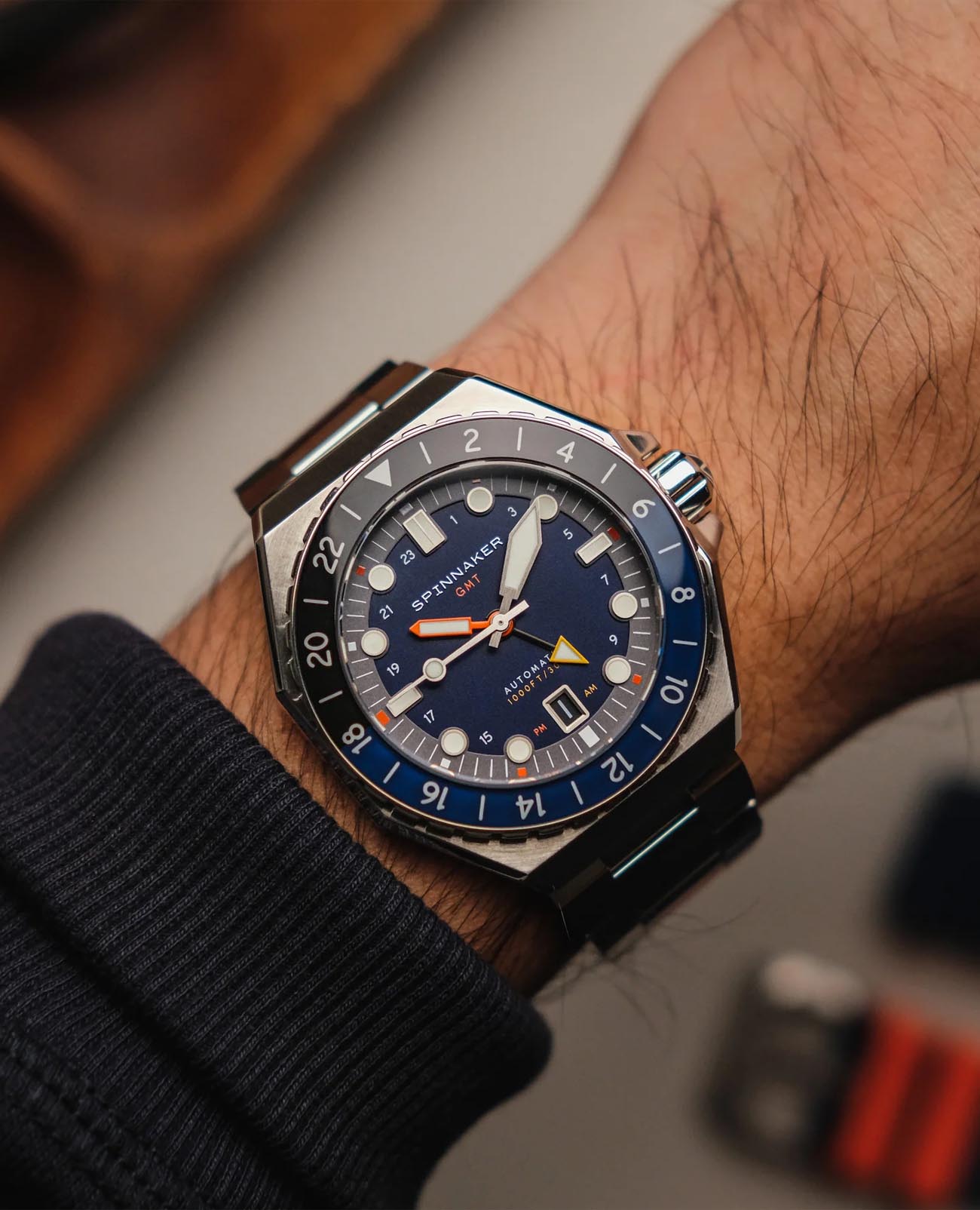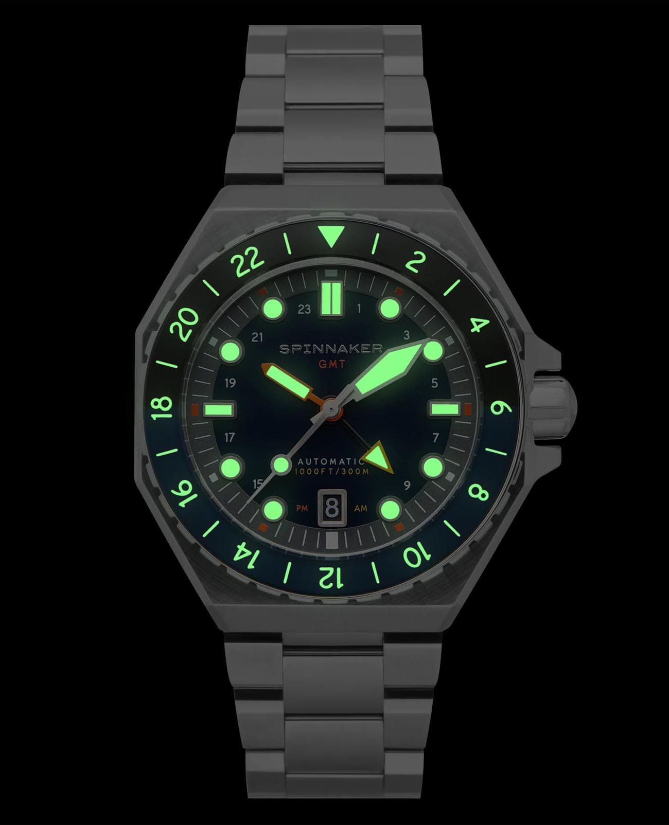 Мужские итальянские механические часы с автоподзаводом Spinnaker Dumas GMTGMTОтображение времени второго часового пояса.Такая функция особенно актуальна для путешественников и бизнесменов,которые общаются с людьми из разных стран,теперь вы всегда будете знать,какой час у вашего партнёра или близкого человека. SP-5119-22, механический механизм (автоматический калибр) с высокой точностью. Циферблат с люминесцентным покрытиемЛюминесцентное покрытиеПозволяет считывать показания времени в темноте. Производители наносят на стрелки, часовые индексы, безель или поверхность циферблата светонакопительный состав, дающий холодное свечение. стрелок, меток и безеляБезельВнешний ободок, закрепляющий стекло. В спортивных часах так называется поворотное кольцо с делениями на циферблате, выполняет роль таймера – замеряет отрезки времени на шкале. Неподвижный безель – элемент декора. Однонаправленно вращающийся безель на дайверских часах позволяет фиксировать моменты погружения и выныривания на поверхность. дополнен сапфировым стекломСапфировое стеклоПрочный и надёжный материал из кристалла сапфира синтетического происхождения, характеризующийся особой твёрдостью и устойчивостью к царапинам и повреждениям. с антибликовым покрытием, устойчивым к появлению царапин и обладающее высокой прозрачностью. Класс водозащиты: 300 метров (погружение с аквалангом). Корпус часов изготовлен из нержавеющей стали 316L. Вращающийся безельБезельВнешний ободок, закрепляющий стекло. В спортивных часах так называется поворотное кольцо с делениями на циферблате, выполняет роль таймера – замеряет отрезки времени на шкале. Неподвижный безель – элемент декора. Однонаправленно вращающийся безель на дайверских часах позволяет фиксировать моменты погружения и выныривания на поверхность. с IP-покрытиемIP-покрытиеМетод ионного напыления. Демонстрирует повышенную устойчивость к истиранию, окислению и химическим веществам. Под воздействием высокого давления и температуры около 1500°C молекулы металла надёжно соединяются с частицами корпуса часов.. Стальной браслет на раскладной застёжкеРаскладная застёжкаТакой тип застёжки используется только на браслетах из металла. Она никогда не раскрывается полностью, происходит разделение на 2 и более частей. Раскладывающая застёжка снизит вероятность потери часов к минимуму.. В комплект входит сменный силиконовый ремешок.