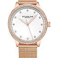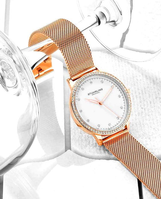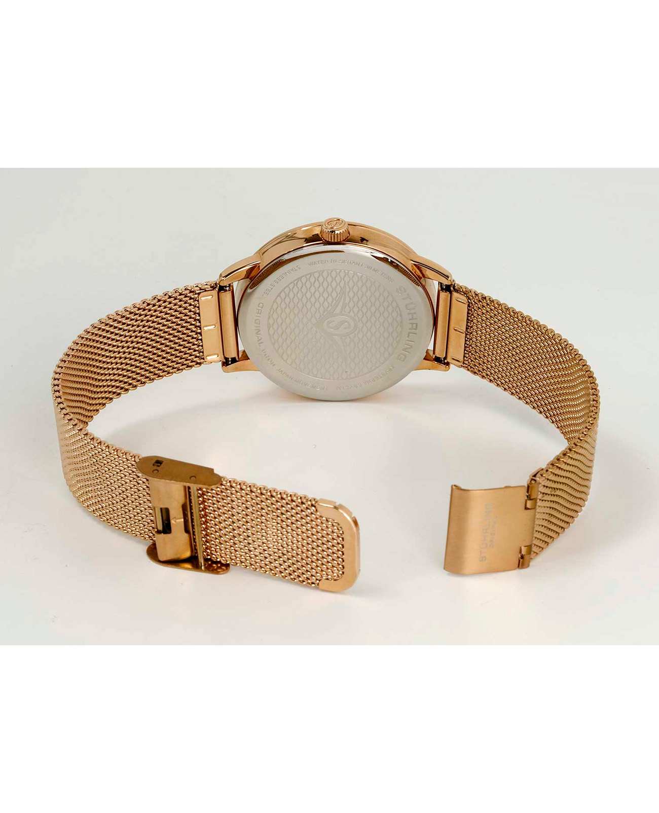 Женские наручные часы Stührling Original 3904.4 — это элегантная модель, сочетающая классический дизайн и современные технологии . Часы относятся к категории dress watch (деловые часы), что делает их идеальным выбором для повседневного использования или особых случаев. Корпус часов диаметром 38 мм изготовлен из высококачественной нержавеющей стали с PVD-покрытиемPVDУльтратонкое покрытие наносится в технике вакуумного напыления, сочетает в себе нитрид титана особой прочности со слоем золота или оксида хрома. Несёт в себе декоративную или защитную функцию. под золото, что подчеркивает элегантность модели . Толщина корпуса составляет всего 8,25 мм, что делает модель изящной и комфортной для ношения . Защиту циферблата обеспечивает прочное стекло KrysternaKrysternaKrysterna — инновационное стекло для наручных часов. Благодаря уникальной структуре, Krysterna объединяет ключевые преимущества двух материалов: твердость сапфира, защищающую от царапин, и гибкость минерального стекла, обеспечивающую устойчивость к деформациям. Такая комбинация делает его идеальным решением для часов, подверженных экстремальным нагрузкам, сохраняя при этом оптическую прозрачность., известное своей устойчивостью к царапинам и механическим повреждениям. Браслет миланского плетения из того же матеариала на раскладном замкеРаскладной замокДанный вариант застежки используется только на часах с металлическим браслетом. Отличительная особенность такого крепления в том, что длина браслета становится универсальной и вы можете самостоятельно отрегулировать нужный вам размер – застежка просто двигается по браслету часов.. Часы оснащены кварцевым механизмом, обеспечивающим точность хода без необходимости ручного завода. Эта модель станет стильным аксессуаром для женщин, ценящих элегантность и практичность в повседневной жизни.