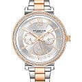 Женские наручные часы Stuhrling 3908.3 сочетают в себе элегантный дизайн и функциональность. Модель обладает круглым корпусом диаметром 40,0 мм, изготовленным из стали с розовым PVD-покрытиемPVDУльтратонкое покрытие наносится в технике вакуумного напыления, сочетает в себе нитрид титана особой прочности со слоем золота или оксида хрома. Несёт в себе декоративную или защитную функцию., что обеспечивает прочность и устойчивость к внешним воздействиям . Толщина корпуса составляет 8,5 мм, что делает часы достаточно компактными для повседневного использования . Браслет из того же материала с частичным PVD-покрытиемPVDУльтратонкое покрытие наносится в технике вакуумного напыления, сочетает в себе нитрид титана особой прочности со слоем золота или оксида хрома. Несёт в себе декоративную или защитную функцию. на раскладной застёжкеРаскладная застёжкаТакой тип застёжки используется только на браслетах из металла. Она никогда не раскрывается полностью, происходит разделение на 2 и более частей. Раскладывающая застёжка снизит вероятность потери часов к минимуму.. Серебристый циферблат украшен римскими цифрами и накладными метками, подчеркивающими классический стиль модели . Для защиты используется стекло KrysternaKrysternaKrysterna — инновационное стекло для наручных часов. Благодаря уникальной структуре, Krysterna объединяет ключевые преимущества двух материалов: твердость сапфира, защищающую от царапин, и гибкость минерального стекла, обеспечивающую устойчивость к деформациям. Такая комбинация делает его идеальным решением для часов, подверженных экстремальным нагрузкам, сохраняя при этом оптическую прозрачность., обеспечивающее повышенную устойчивость к царапинам и надежную защиту циферблата. Часы работают на кварцевом механизме, что гарантирует точное время без необходимости подзаводки . Водонепроницаемость часов составляет 30WR, что позволяет использовать их в повседневной жизни, включая контакт с водой, например, при мытье рук, но не рекомендуется для плавания или дайвинга.
