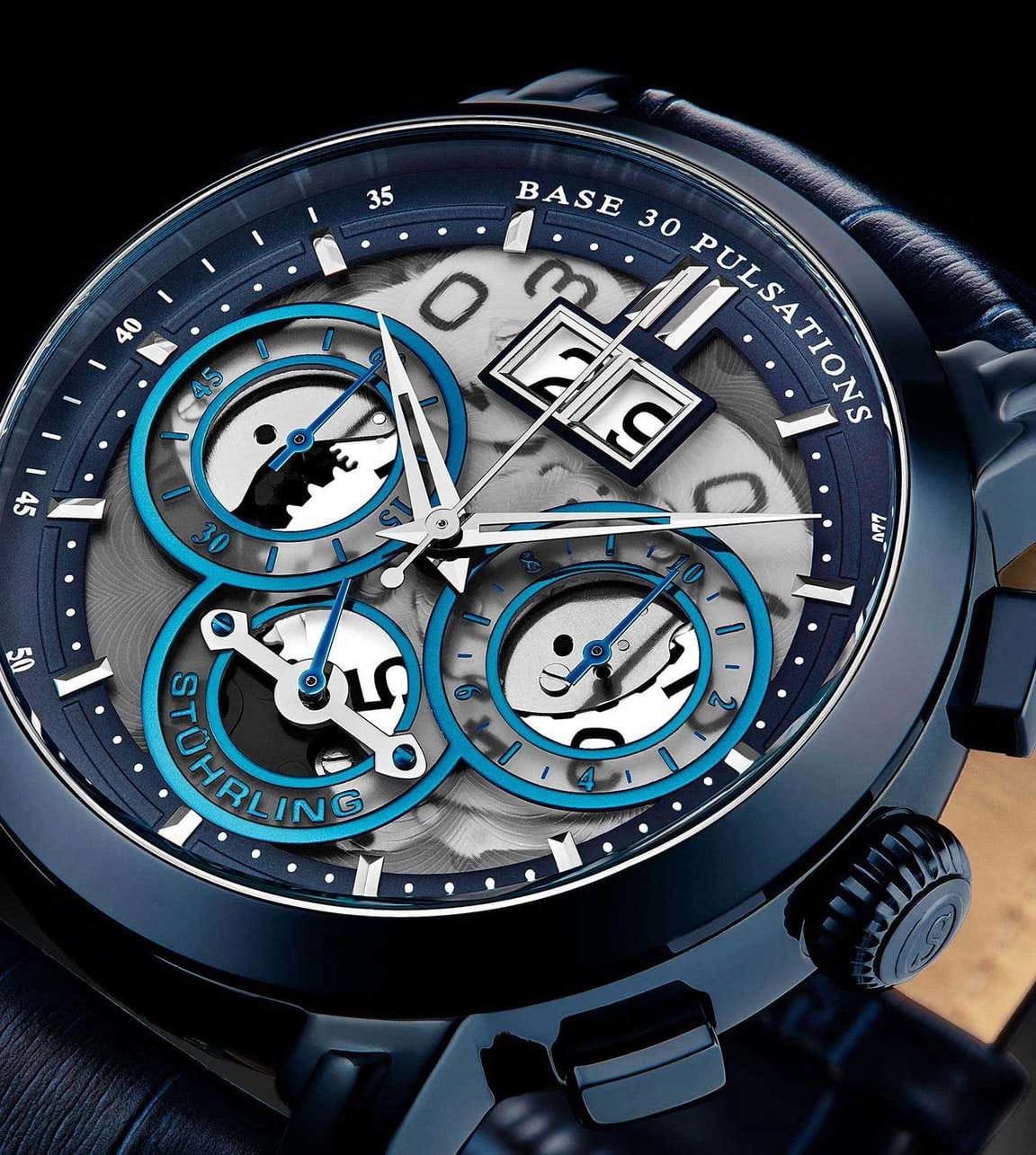 Stuhrling 392.02 — мощные мужские часы с выразительным индустриальным дизайном и технологичной эстетикой. Матовый корпус с PVD-покрытиемPVDУльтратонкое покрытие наносится в технике вакуумного напыления, сочетает в себе нитрид титана особой прочности со слоем золота или оксида хрома. Несёт в себе декоративную или защитную функцию. подчёркивает брутальный характер модели, а многослойный циферблат с тремя счётчиками хронографаХронографФункция позволяет измерять отрезки времени с особой точностью: часы, минуты, секунды. Верным признаком хронографа является наличие на циферблате 3 дополнительных окошек-счётчиков. и крупным окном даты создаёт эффект глубины и механической сложности. Контрастные стрелки и метки обеспечивают превосходную читаемость. Прочное стекло KrysternaKrysternaKrysterna — инновационное стекло для наручных часов. Благодаря уникальной структуре, Krysterna объединяет ключевые преимущества двух материалов: твердость сапфира, защищающую от царапин, и гибкость минерального стекла, обеспечивающую устойчивость к деформациям. Такая комбинация делает его идеальным решением для часов, подверженных экстремальным нагрузкам, сохраняя при этом оптическую прозрачность. защищает от царапин, а кожаный ремень с текстурой под крокодила придаёт модели утончённость и комфорт. Stuhrling — это современный баланс между инженерной мощью и смелым дизайнерским почерком.