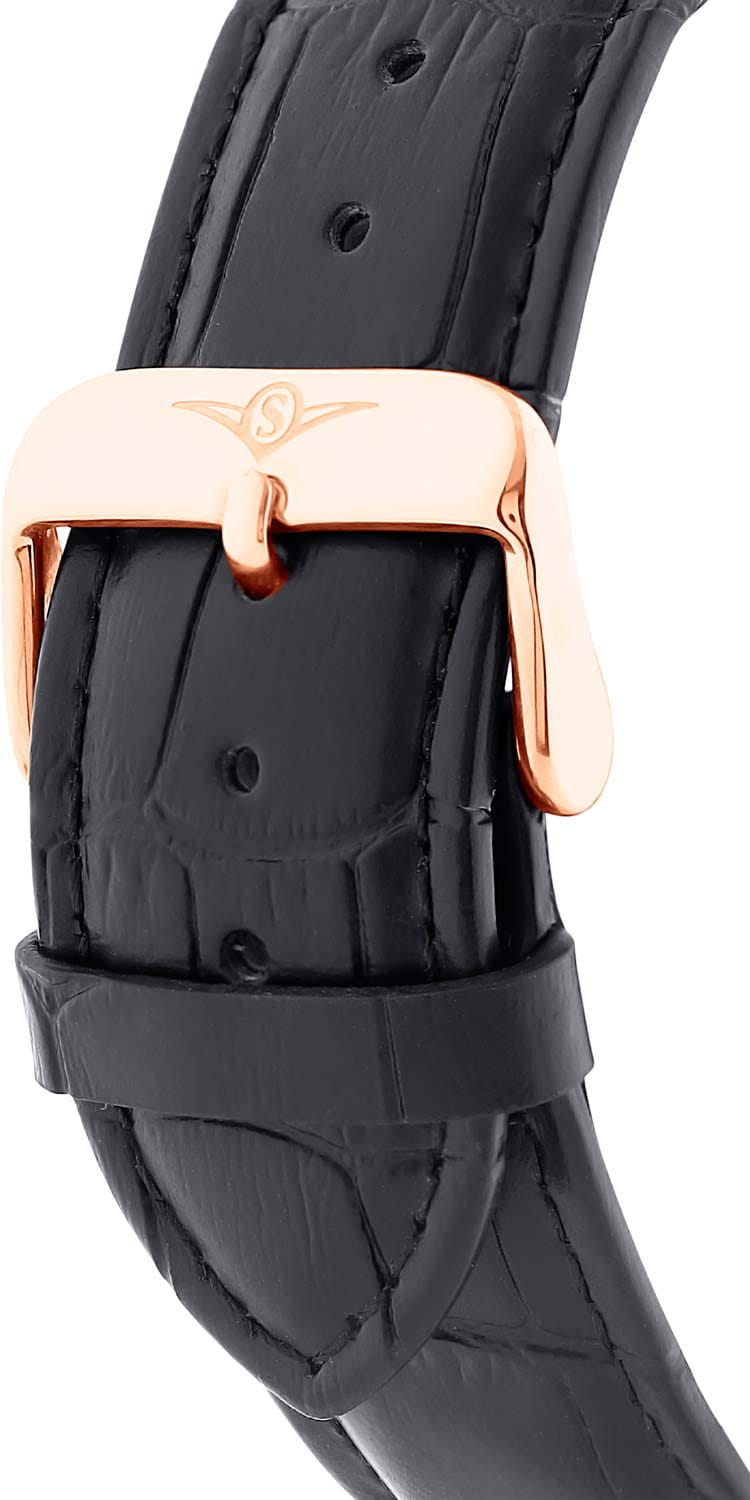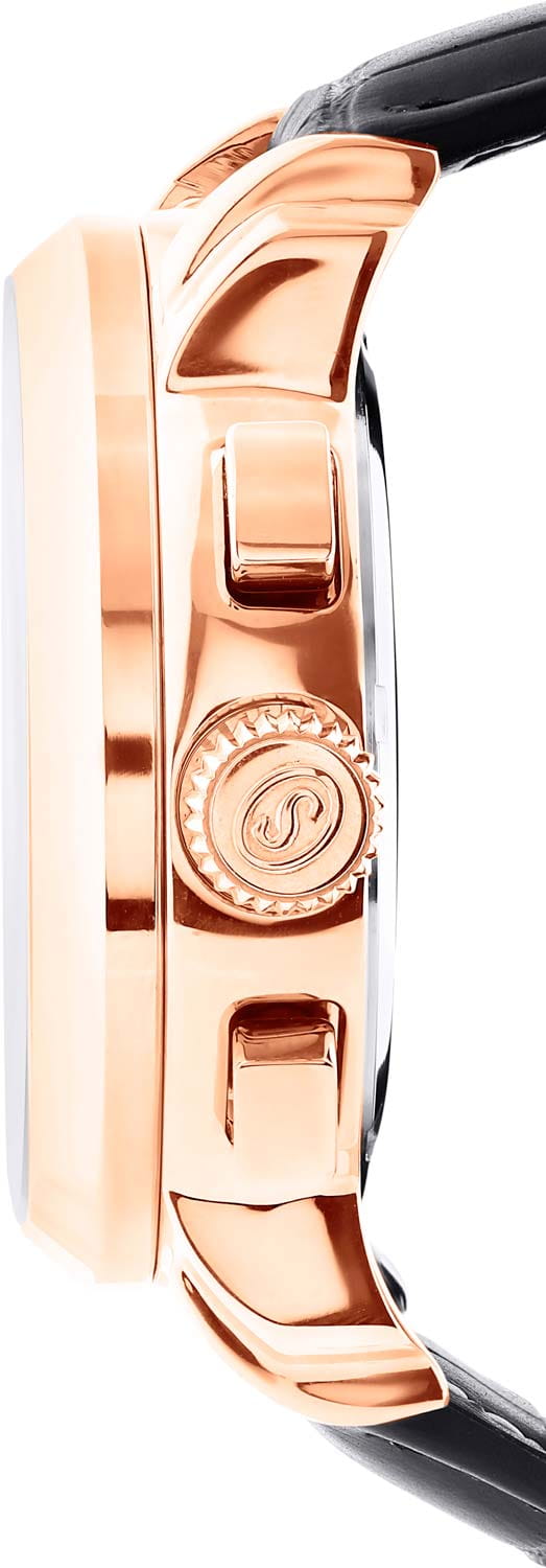 Stuhrling 4013.2 — мощные мужские часы с выразительным индустриальным дизайном и технологичной эстетикой. Золотистый корпус с PVD-покрытиемPVDУльтратонкое покрытие наносится в технике вакуумного напыления, сочетает в себе нитрид титана особой прочности со слоем золота или оксида хрома. Несёт в себе декоративную или защитную функцию. подчёркивает брутальный характер модели, а многослойный белый циферблат с тремя счётчиками хронографаХронографФункция позволяет измерять отрезки времени с особой точностью: часы, минуты, секунды. Верным признаком хронографа является наличие на циферблате 3 дополнительных окошек-счётчиков. и крупным двойным окном даты создаёт эффект глубины и механической сложности. Контрастные стрелки и метки обеспечивают превосходную читаемость. Прочное стекло KrysternaKrysternaKrysterna — инновационное стекло для наручных часов. Благодаря уникальной структуре, Krysterna объединяет ключевые преимущества двух материалов: твердость сапфира, защищающую от царапин, и гибкость минерального стекла, обеспечивающую устойчивость к деформациям. Такая комбинация делает его идеальным решением для часов, подверженных экстремальным нагрузкам, сохраняя при этом оптическую прозрачность. защищает от царапин, а кожаный ремень с текстурой под крокодила придаёт модели утончённость и комфорт. Stuhrling — это современный баланс между инженерной мощью и смелым дизайнерским почерком.