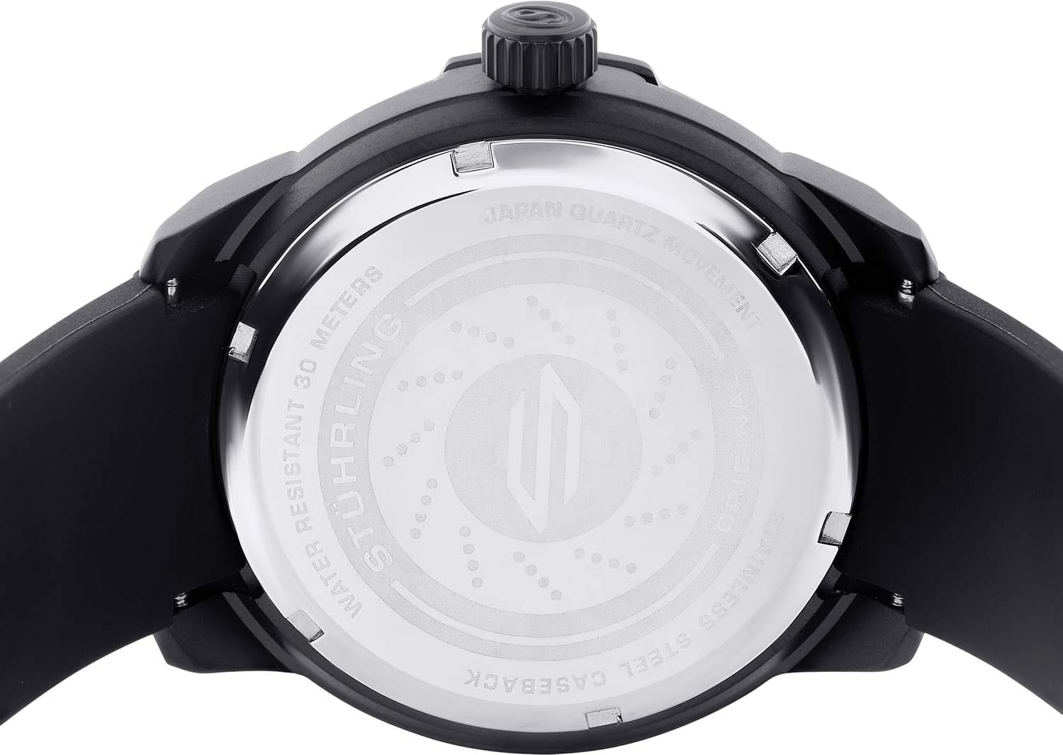 Stuhrling 984.01 — эффектные мужские часы с ярким спортивным характером и футуристичным дизайном. Корпус из нержавеющей стали с чёрным PVD-покрытиемPVDУльтратонкое покрытие наносится в технике вакуумного напыления, сочетает в себе нитрид титана особой прочности со слоем золота или оксида хрома. Несёт в себе декоративную или защитную функцию. придаёт модели выразительный матовый оттенок и повышенную устойчивость к царапинам. Циферблат выполнен в виде стилизованного ротора, где акценты насыщенного цвета создают ощущение движения и энергии. Прочный силиконовый ремешок обеспечивает комфорт и долговечность, а стекло KrysternaKrysternaKrysterna — инновационное стекло для наручных часов. Благодаря уникальной структуре, Krysterna объединяет ключевые преимущества двух материалов: твердость сапфира, защищающую от царапин, и гибкость минерального стекла, обеспечивающую устойчивость к деформациям. Такая комбинация делает его идеальным решением для часов, подверженных экстремальным нагрузкам, сохраняя при этом оптическую прозрачность. надёжно защищает поверхность от повреждений. Stuhrling — часы для тех, кто выбирает технологичный стиль и мощную эстетику в каждой детали.