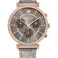 Изысканные швейцарские часы-хронографХронографФункция позволяет измерять отрезки времени с особой точностью: часы, минуты, секунды. Верным признаком хронографа является наличие на циферблате 3 дополнительных окошек-счётчиков. с секундомеромСекундомерСекундоме́р — прибор, способный измерять интервалы времени с точностью до долей секунды. Swarovski 5580348 подчеркнут вашу женственность и элегантность. Эти часы обладают кварцевым механизмом, обеспечивающим точность хода. Корпус выполнен из стали с розово-золотистым PVDPVDУльтратонкое покрытие наносится в технике вакуумного напыления, сочетает в себе нитрид титана особой прочности со слоем золота или оксида хрома. Несёт в себе декоративную или защитную функцию. покрытием, что придает им утонченный вид, а серый перламутровый циферблат создает нежный акцент. Особое внимание привлекают кристаллы Swarovski, которые украшают как и безельБезельВнешний ободок, закрепляющий стекло. В спортивных часах так называется поворотное кольцо с делениями на циферблате, выполняет роль таймера – замеряет отрезки времени на шкале. Неподвижный безель – элемент декора. Однонаправленно вращающийся безель на дайверских часах позволяет фиксировать моменты погружения и выныривания на поверхность. с розово-золотистым PVDPVDУльтратонкое покрытие наносится в технике вакуумного напыления, сочетает в себе нитрид титана особой прочности со слоем золота или оксида хрома. Несёт в себе декоративную или защитную функцию. покрытием, так и циферблат, добавляя блеска и лоска. Кожаный ремешок с классической застежкой обеспечивает комфортное ношение и легкость замены, что позволяет легко адаптировать часы к вашему настроению и стилю. Эти часы с водозащитой 50WR подойдут для повседневного использования, а минеральное стеклоМинеральное стеклоМинеральное стекло представляет собой искусственно выращенный минерал кварца. Такое стекло отличается особой устойчивостью к повреждениям и царапинам. Уступает по некоторым качествам сапфировому стеклу. защитит их от царапин. Диаметр корпуса составляет 36 мм, а длина ремешка – 190 мм, что делает их удобными и подходящими для любой женской руки. Эти часы не просто аксессуар, а настоящее произведение искусства, способное стать ярким акцентом любого образа.