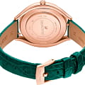 Swarovski 5644078 — элегантные женские часы из коллекции Crystalline Aura, сочетающие изысканный дизайн с высоким качеством. Корпус диаметром 35,5 мм выполнен из нержавеющей стали с розовым PVD-покрытиемPVDУльтратонкое покрытие наносится в технике вакуумного напыления, сочетает в себе нитрид титана особой прочности со слоем золота или оксида хрома. Несёт в себе декоративную или защитную функцию., что обеспечивает долговечность и элегантный вид. Минеральное стеклоМинеральное стеклоМинеральное стекло представляет собой искусственно выращенный минерал кварца. Такое стекло отличается особой устойчивостью к повреждениям и царапинам. Уступает по некоторым качествам сапфировому стеклу. защищает циферблат от царапин. Корпус украшен более чем 1300 кристаллами Swarovski, создающими роскошный блеск. Зеленый циферблат с изящными золотистыми метками и стрелками подчёркивает утончённость дизайна. Логотип Swarovski в виде лебедя расположен на отметке «12 часов». Часы оснащены швейцарским кварцевым механизмом, обеспечивающим точный ход. Ремешок из итальянской телячьей кожи зеленого цвета гарантирует комфортное ношение. Классическая застёжка обеспечивает надёжную фиксацию. Водозащита до 5 ATM (50 метров) делает часы подходящими для повседневного использования. Swarovski 5644078 — это идеальный выбор для женщин, ценящих утончённый стиль, функциональность и комфорт.