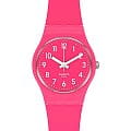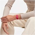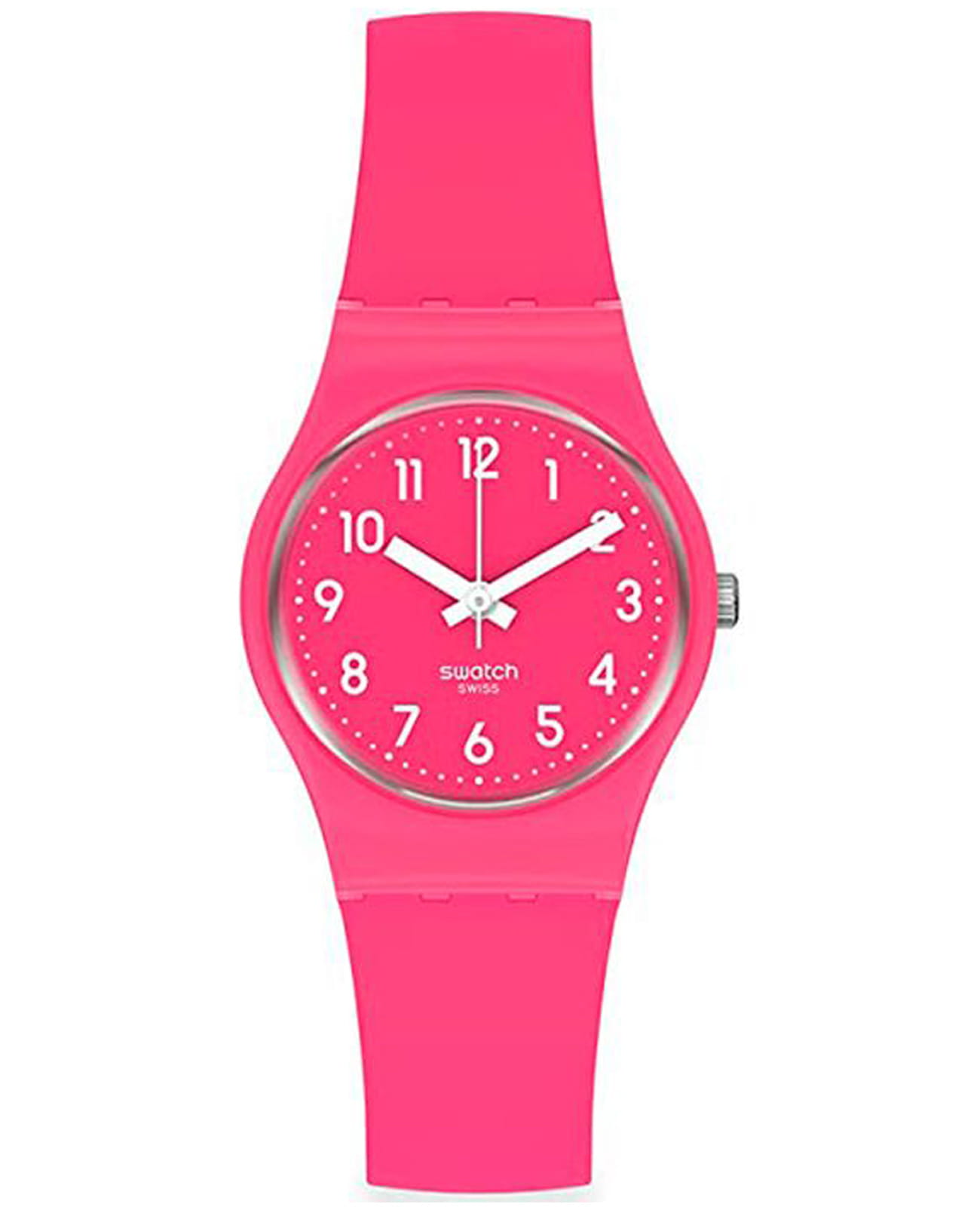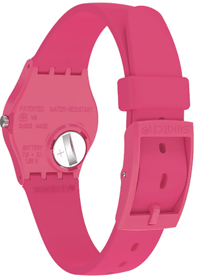 Швейцарские наручные часы Swatch LR123C. Эти современные и легкие женские часы относятся к коллекции Lady. С водозащитой до 30 метров они надежно защищают корпус от случайных брызг и капель дождя. Акриловое стекло, используемое в этих часах, обладает высокой прочностью и трудно разбивается; это легкий прозрачный пластик, который может прогибаться при ударах и не разлетается на осколки. Кроме того, акрил устойчив к перепадам температуры и высокому давлению. Корпус часов ярко-розового цвета выполнен из полимера, а механизм — кварцевый. Кварцевые часы обеспечивают большую точность по сравнению с механическими, с погрешностью хода около 20 секунд в месяц. Они не требуют завода, достаточно менять батарейку раз в несколько лет.  Ремешок силиконовый, с классической застежкой.