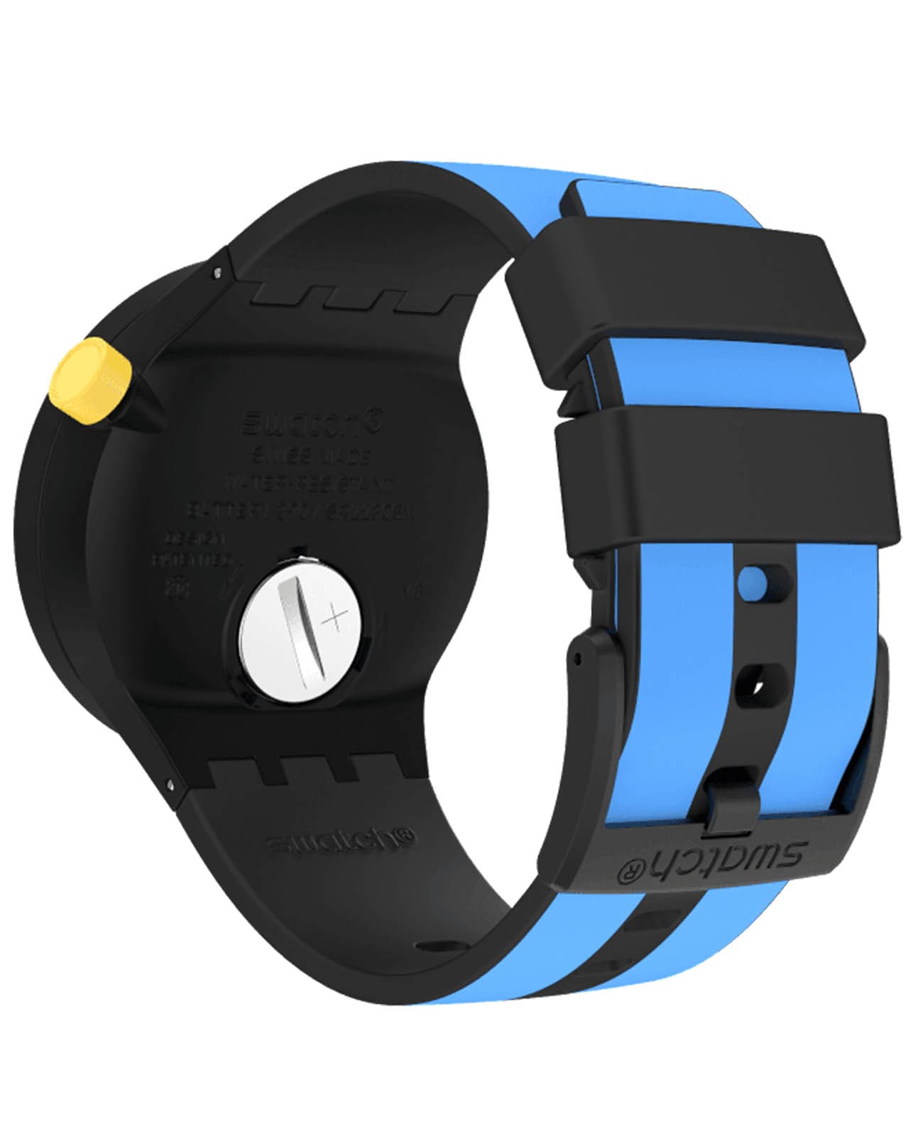 Часы Swatch SB03B108 — это стильный и современный аксессуар для тех, кто ценит лёгкость и комфорт. Часы идеально подойдут как для мужчин, так и для женщин. Центральный элемент этой модели часов — большой корпус со стеклом из био-материала, украшенный 3D-циферблатом с принтами на индексах. Корпус из биокерамикиБиокерамикаБиокерамика — это материал, который на две трети состоит из керамики, на одну треть — из биопластика. Он сочетает в себе лучшие качества обоих материалов и обладает прочностью и шелковистой на ощупь текстурой., а также силиконовые тренчики подчеркивают голубой принт на силиконовом ремешке этих огромных часов. На часовую, минутную стрелки нанесено люминесцентное покрытиеЛюминесцентное покрытиеПозволяет считывать показания времени в темноте. Производители наносят на стрелки, часовые индексы, безель или поверхность циферблата светонакопительный состав, дающий холодное свечение., которое светится в темноте, создавая необычное изображение. Водозащита 30 метров делает часы практичными для повседневного использования. Эти часы подойдут для повседневного ношения и станут ярким акцентом в вашем наряде.