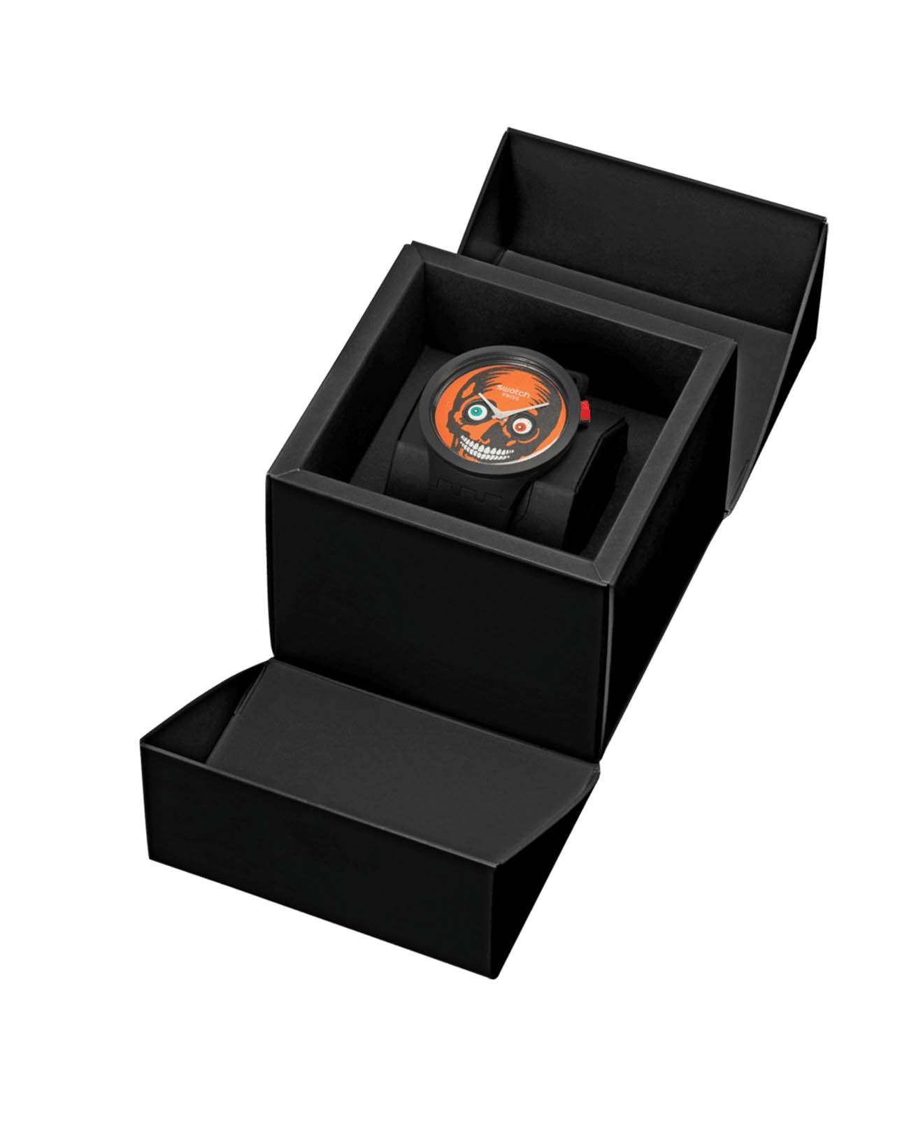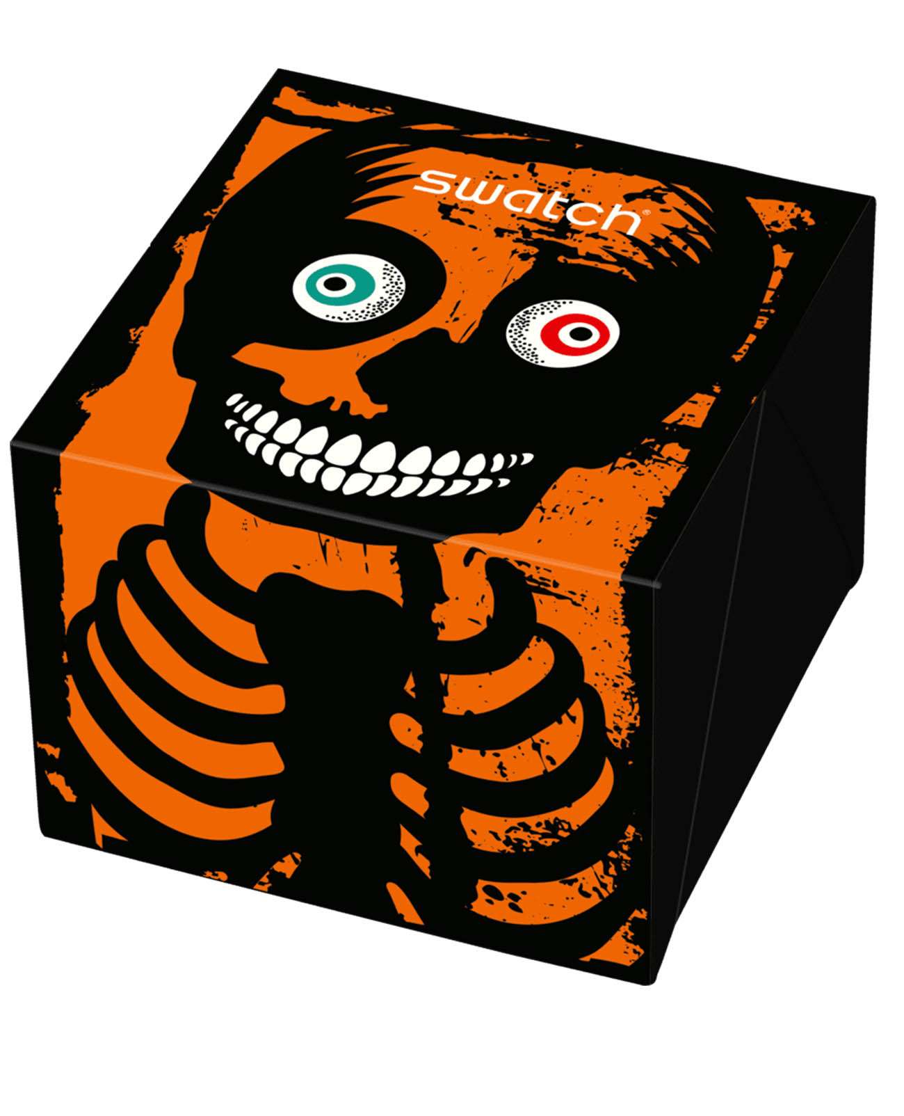 Часы Swatch SB03B700 — это стильный и современный аксессуар для тех, кто ценит лёгкость и комфорт. Часы идеально подойдут как для мужчин, так и для женщин. Эти часы прекрасно подойдут для вечеринки по случаю Хэллоуина. Персонаж под биостеклом строит безумные гримасы, зловеще вращая глазами с помощью специального механизма календарного колесика. Корпус из биокерамикиБиокерамикаБиокерамика — это материал, который на две трети состоит из керамики, на одну треть — из биопластика. Он сочетает в себе лучшие качества обоих материалов и обладает прочностью и шелковистой на ощупь текстурой., а ремешок — из однотонного матово-черного силикона. Водозащита 30 метров делает часы практичными для повседневного использования. Эти часы подойдут для повседневного ношения и станут ярким акцентом в вашем наряде.